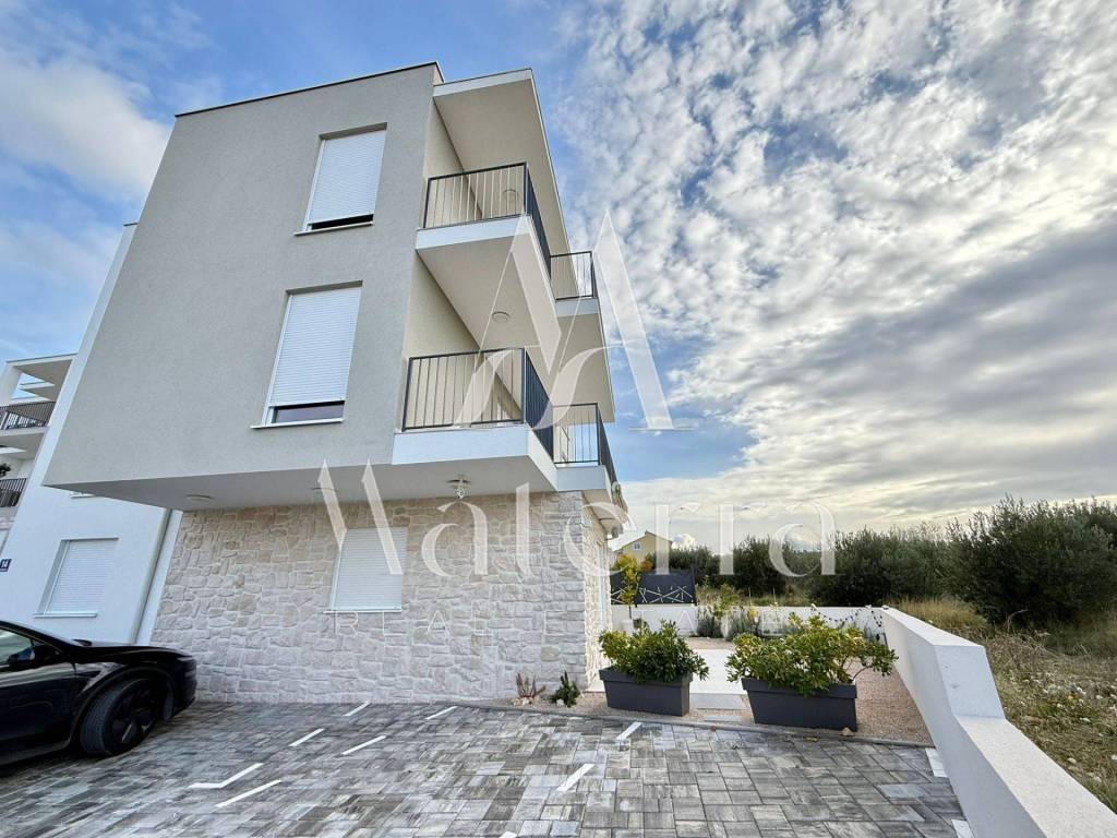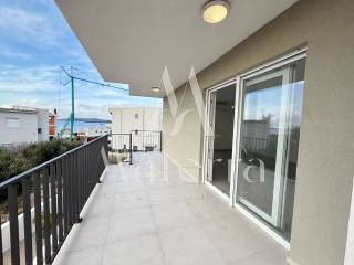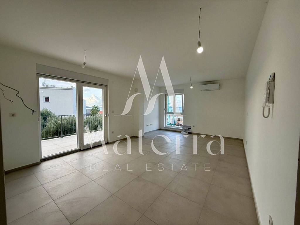 For sale is a well-designed two-bedroom apartment with a total living area of 66.51 m², located on the first floor of a residential building in Žaborić. The apartment features an entrance hall, bathroom, two bedrooms, and an open-plan living area combining the kitchen, dining area, and living room. From the living area, there is access to a covered terrace of 15 m² offering a beautiful sea view.