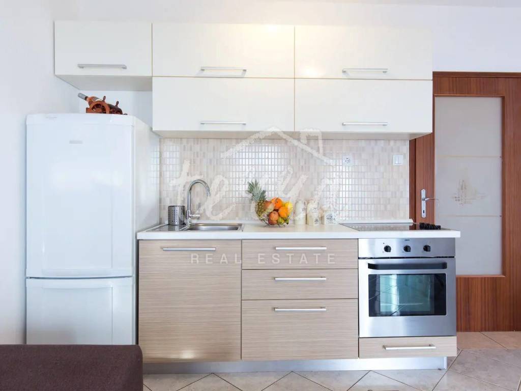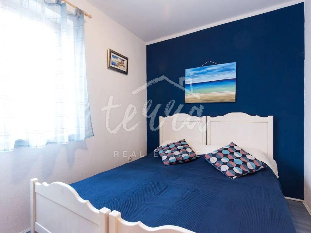 We are selling a detached house with five residential units on a plot of 759m2. On the first floor of the house, there is a two-bedroom apartment and on the first and second floors, there are two one-bedroom apartments. Each floor has a terrace with beautiful views of the sea. Each apartment has air conditioning for heating and cooling, and there is also a wood-burning stove on the first floor. All apartments are sold furnished. In the garden, there are two barbecues, a garden with Mediterranean herbs, and a parking lot for four cars. The house is intended for tourist rental, but it is possible to live in it all year round.