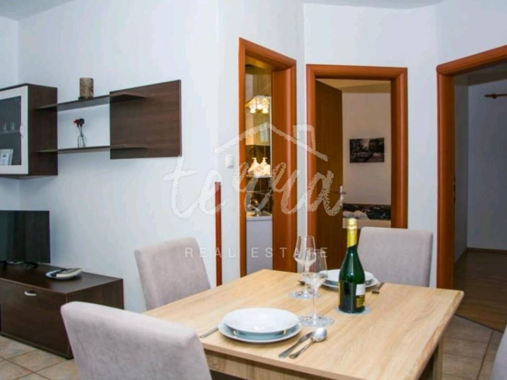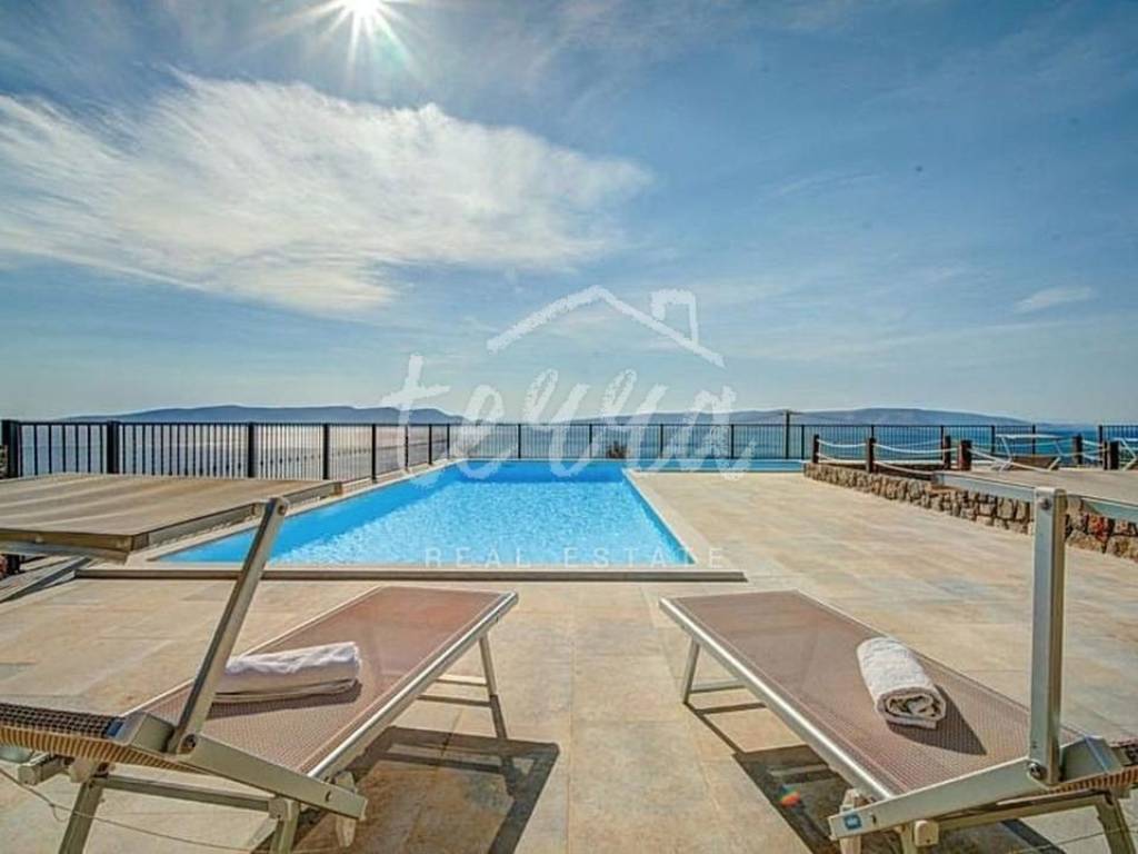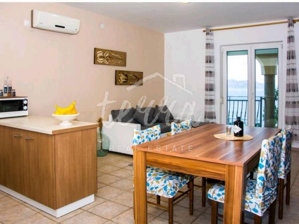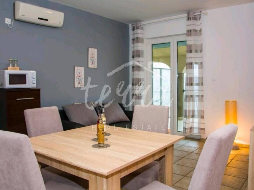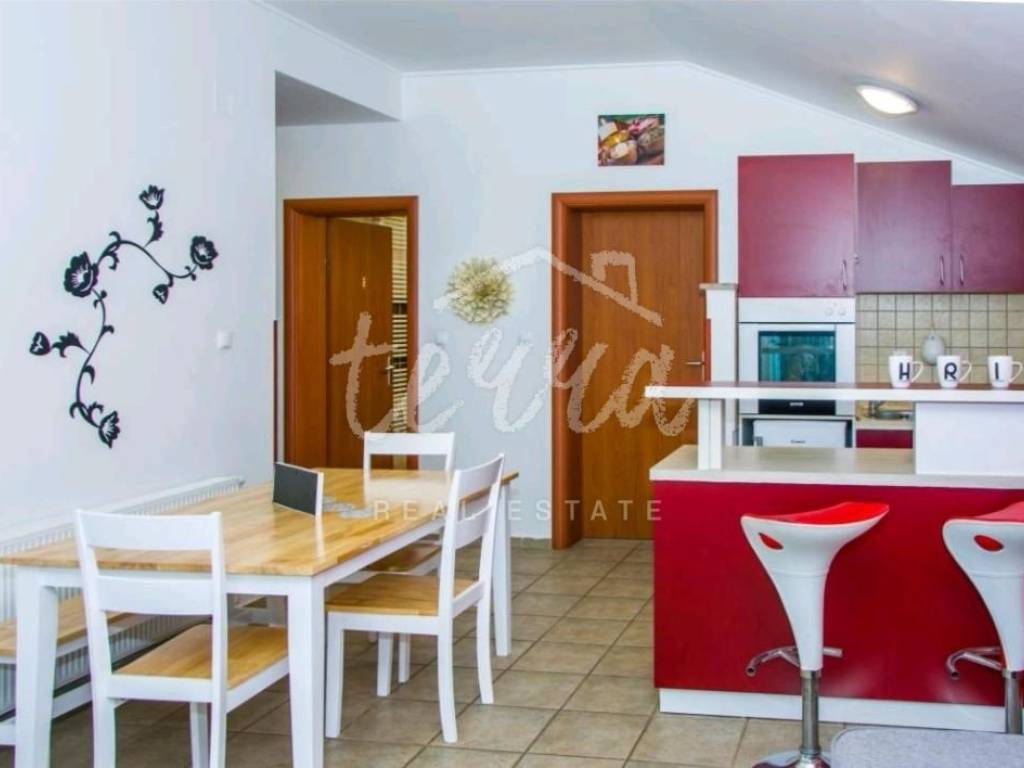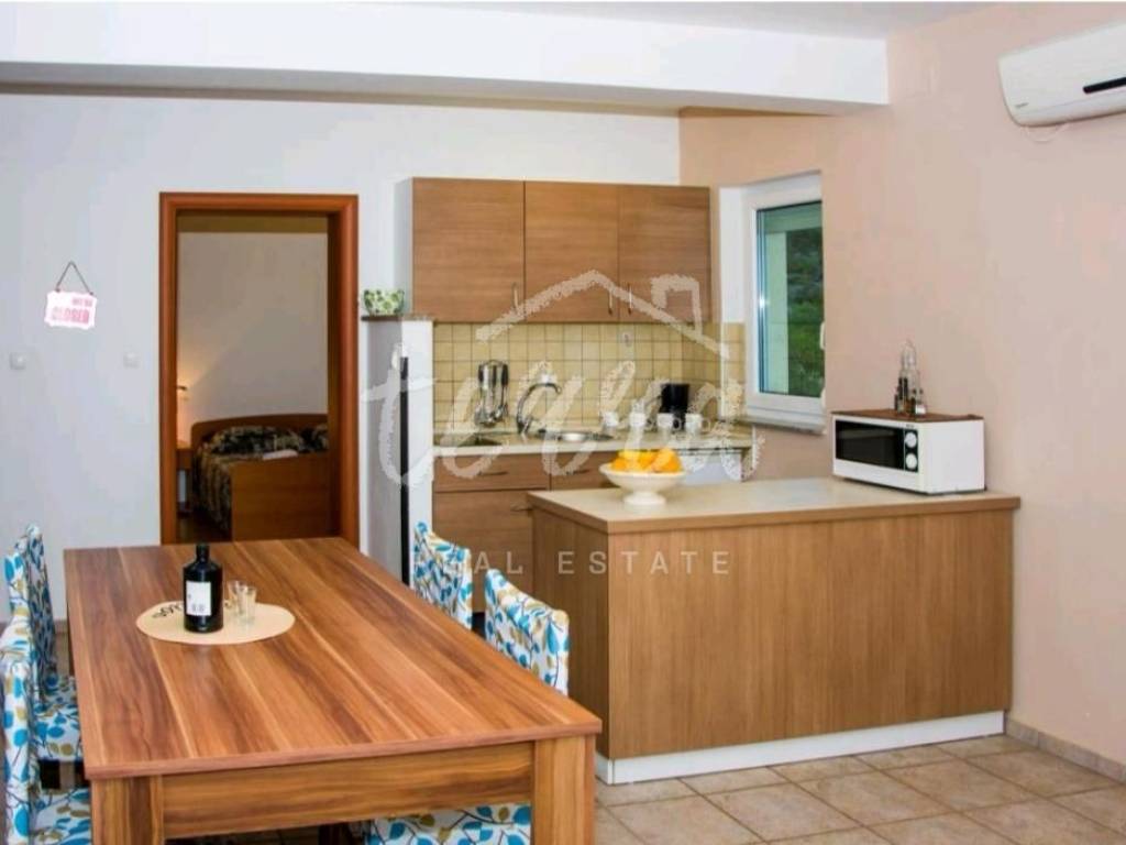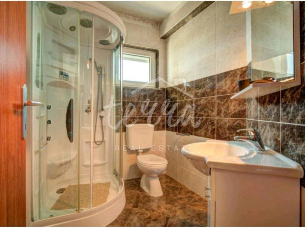 We are selling a house with five residential units, a tavern, a swimming pool of 64 m2 and a building plot of 360 m2. The house consists of a ground floor, two floors and an attic. The ground floor has a garage, two bedroom apartment with two bathrooms, kitchen, dining room and open plan living room. The ground floor apartment has underfloor heating. On the first and second floor there are four two-bedroom apartments with beautiful sea views. One apartment has central pellet heating. The whole house is air conditioned. The attic can be converted into living space. Property in a well-established tourist rental. Location beautiful ideal for relaxation and enjoyment.