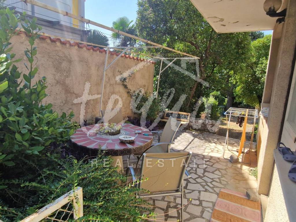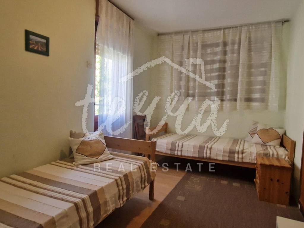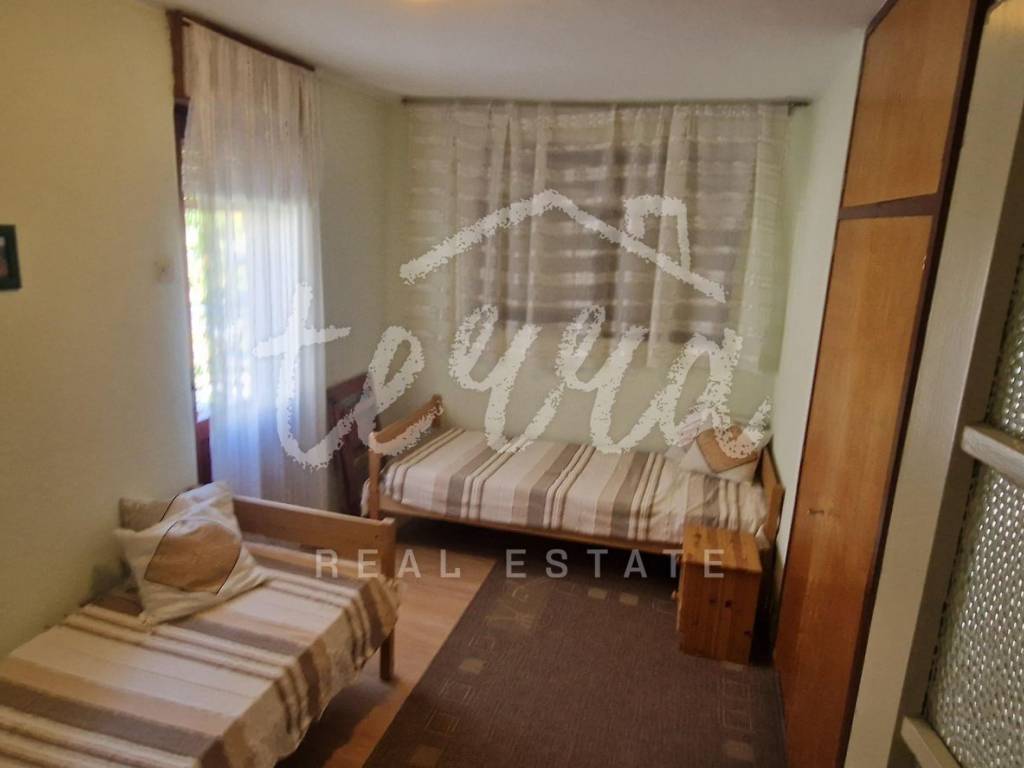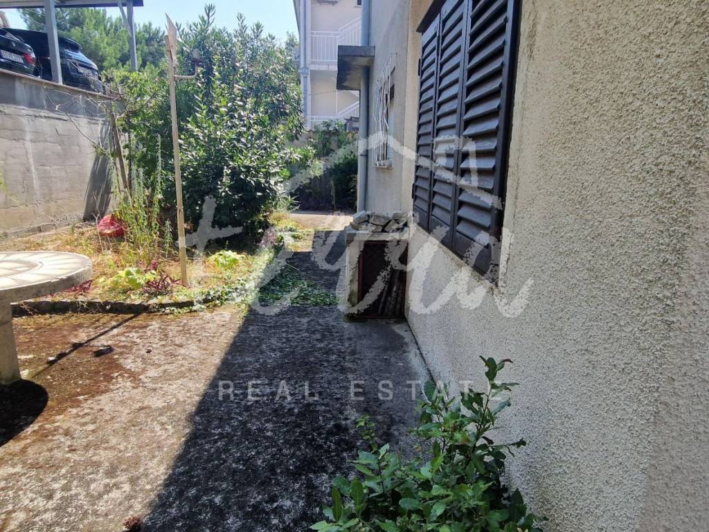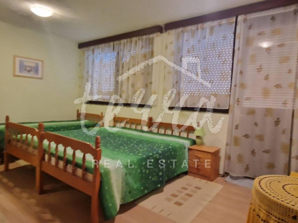 A spacious house with a net area of over 240 m² is for sale in an attractive location in Crikvenica, close to the sea and promenade. The house, situated in the second row from the sea, is on a 437 m² plot and consists of a basement, ground floor, first and second floors. The basement features a summer kitchen with a terrace. The ground floor, with two entrances, includes a living room with a fireplace, main bathroom, storage room, kitchen, bedroom with an additional bathroom, two hallways, and a terrace. The first floor has three bedrooms, one with a sea-view terrace, another with a small balcony, and the third with a balcony, along with a shared bathroom. The second floor, a raised attic, includes a small bedroom, a large semi-open space that can serve as a bedroom, living room, and a space planned for a kitchen, and a large terrace with a stunning sea view. The plot is fully fenced and provides parking for four cars within the yard.