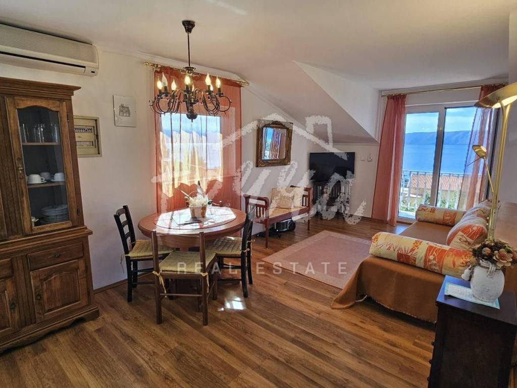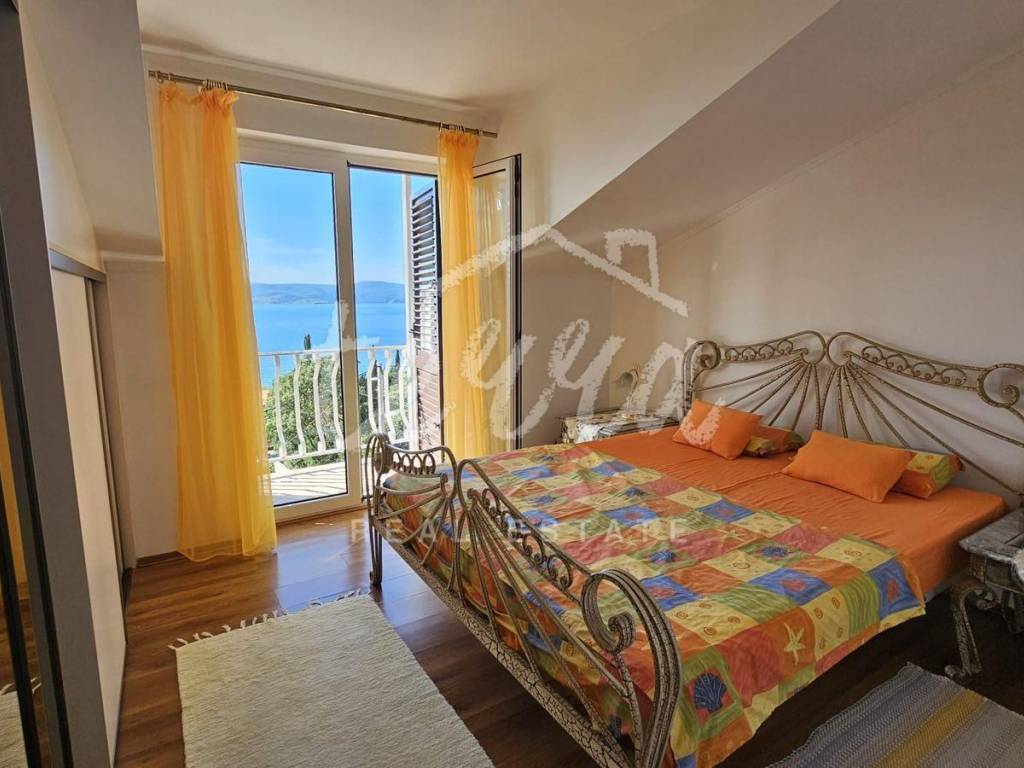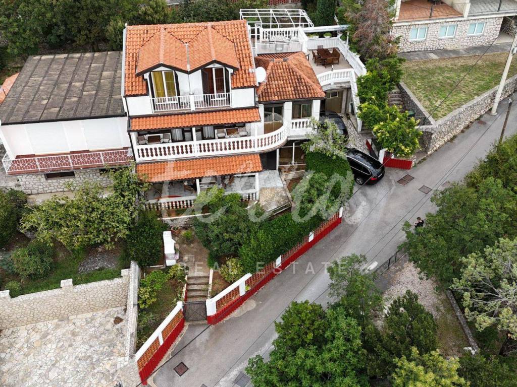 The second floor also has a terrace in front of the main entrance, two bedrooms, bathroom, kitchen, living room and dining room and a balcony with a beautiful view of the sea and the island of Krk. The heating is on the air conditioner.