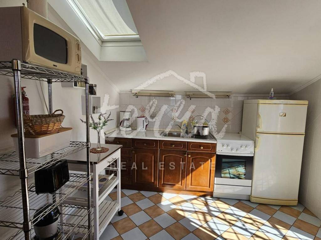 The ground floor of the house consists of three bedrooms (one is used as an office), two bathrooms, kitchen and living room, and a covered terrace with a view of the sea. This unit is equipped with central heating and air conditioning.
