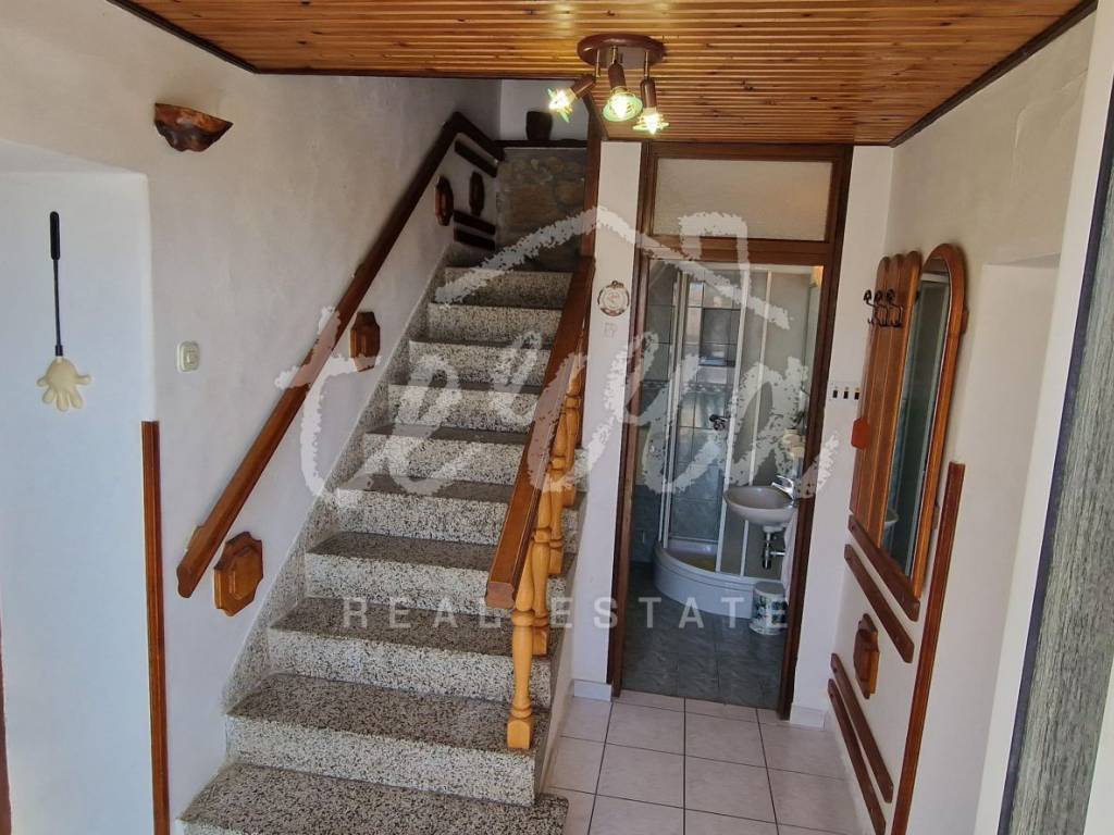 Nestled in the charming village of Grižane, just a short drive from Crikvenica, this inviting home offers privacy and tranquility. Spread across two floors, it features a hallway, cozy living room, kitchen with dining area, and three bedrooms, two of which are on the upper floor. The north side boasts a spacious courtyard, while the south side offers a garage, additional parking, and a garden. The home is move-in ready but could use a refresh to unlock its full potential. From this prime spot, enjoy a stunning sea view over the Crikvenica hinterland, creating a perfect oasis close to the coast.