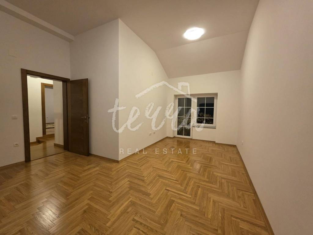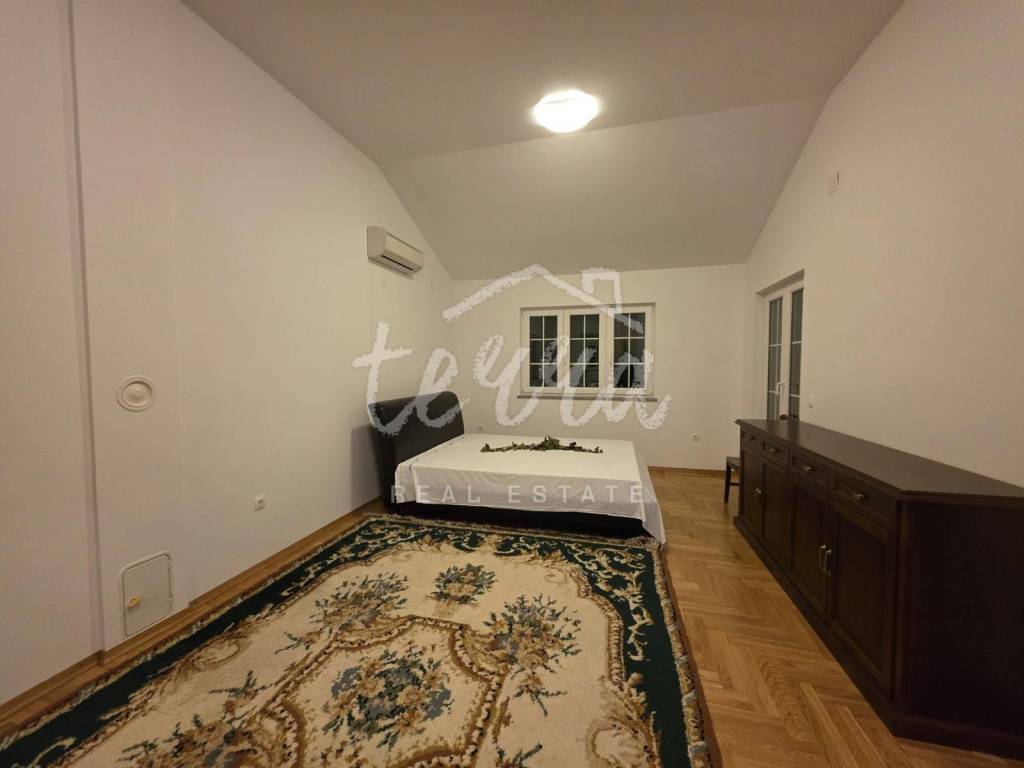 We are selling a house with a yard at the end of a quiet street. It consists of a ground floor and two floors. The ground floor has a kitchen and dining room, and a storage room with a separate entrance. An external staircase leads to the terrace from which there is an entrance to the rest of the house. On the first floor there are two spacious bedrooms and a bathroom, while on the second floor there are three bedrooms and a bathroom. Each room has its own balcony. The balcony offers a view of the sea. The house has been renovated with quality. The property is ideal for living, and also for tourism.