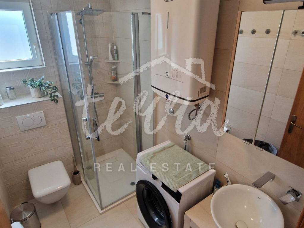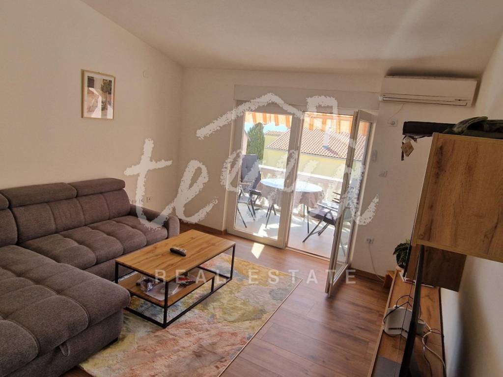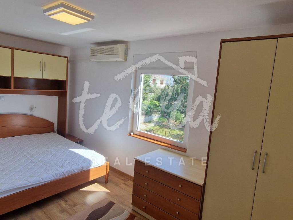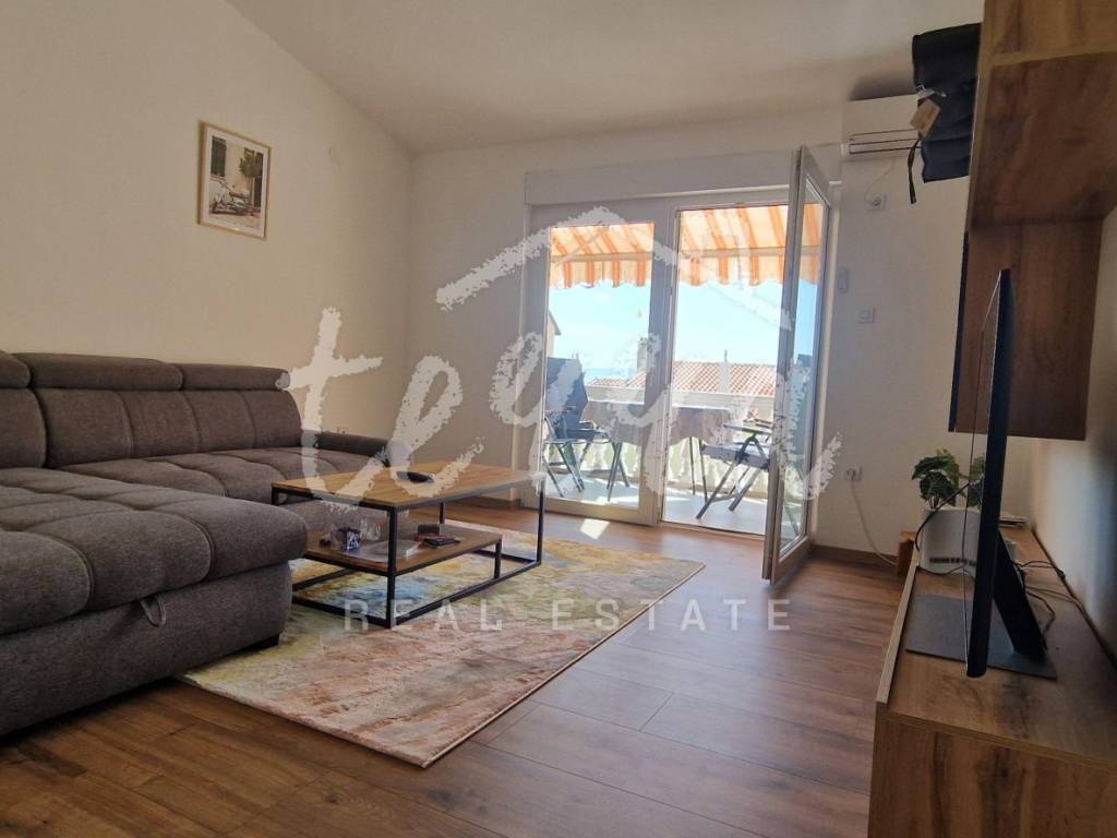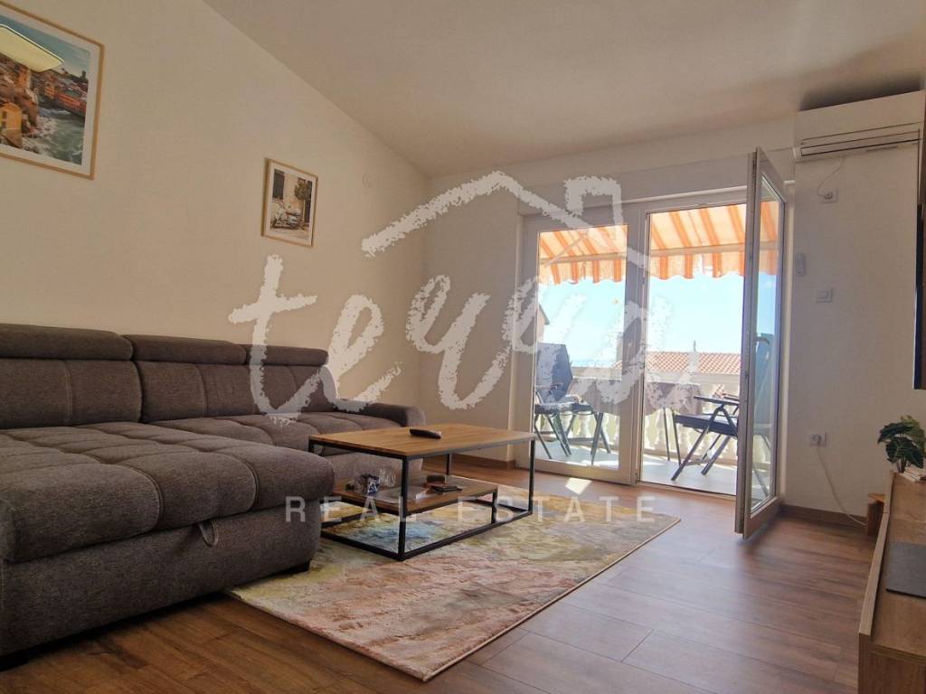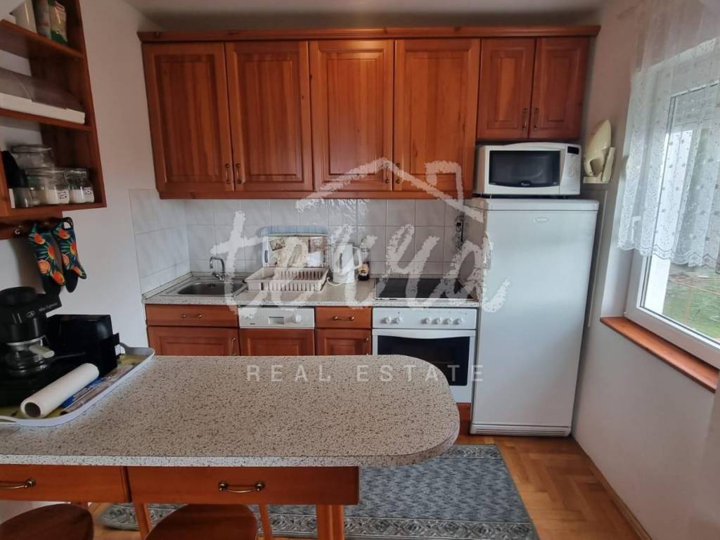 We present an apartment in an extraordinary location not far from the sea. The apartment consists of hallway, bathroom, bedroom, kitchen with dining room and living room, storage room and has two balconies on the north side and south side with a wonderful view of the sea. An additional storage room located within the garden offers sufficient space for storing items, while its own parking ensures convenience in the heart of the tourist season. This apartment, although not a new construction, brings with it the warmth of time and subtle elegance, giving you a perfect mix of traditional and contemporary coastal lifestyle.