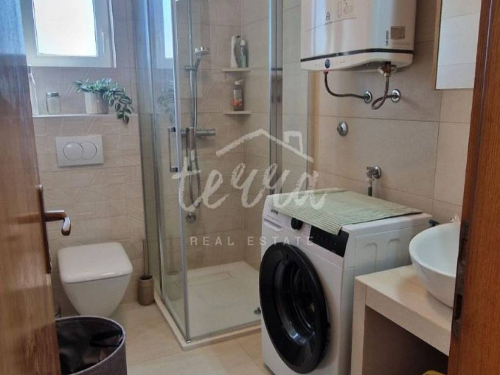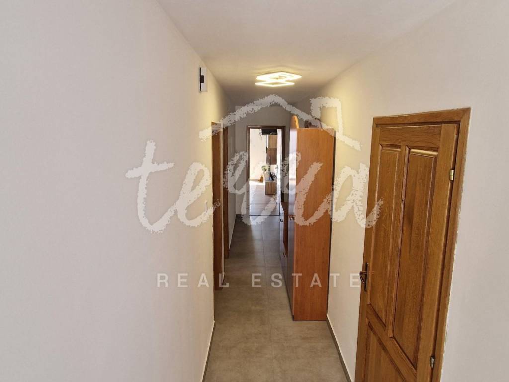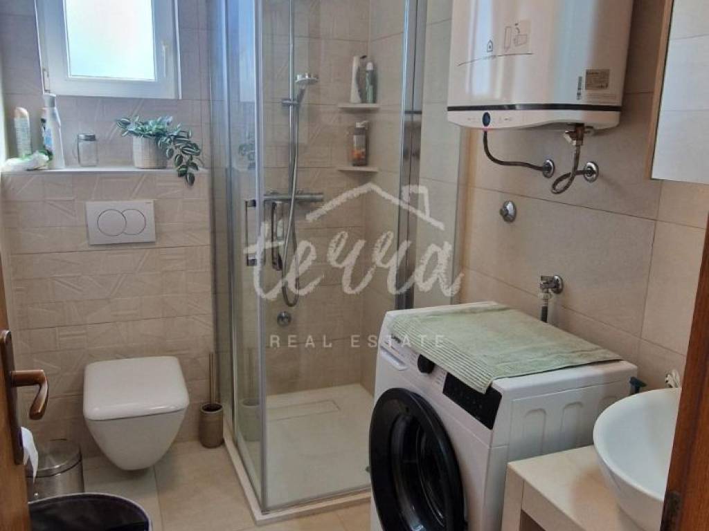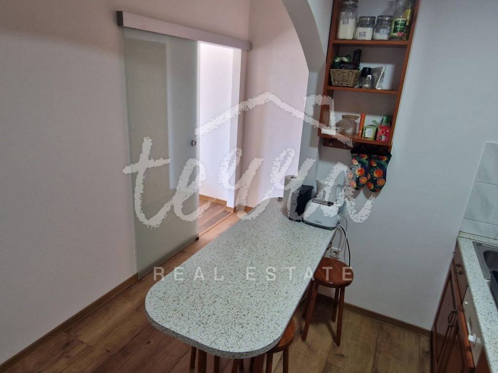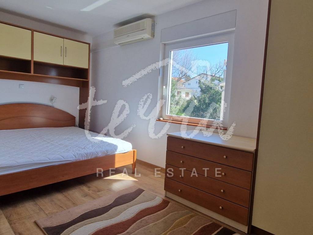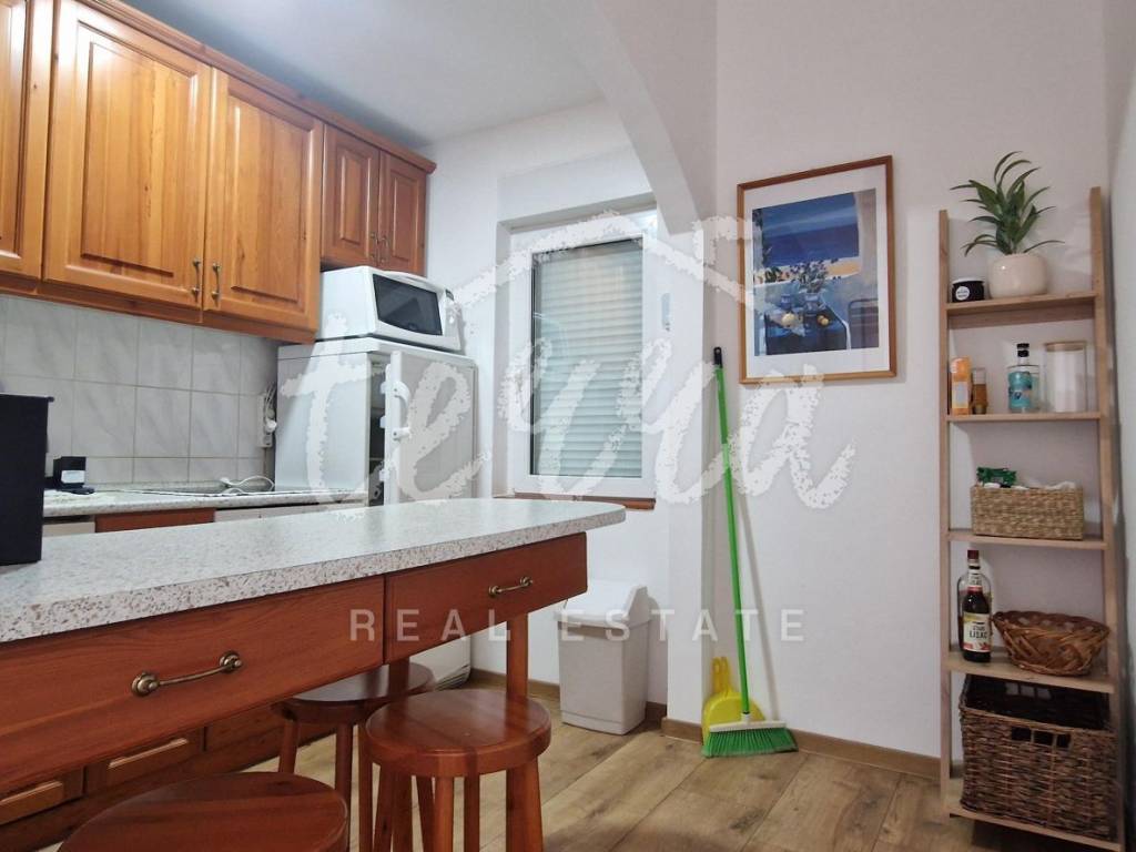 We present an apartment in an extraordinary location not far from the sea. The apartment consists of hallway, bathroom, bedroom, kitchen with dining room and living room, storage room and has two balconies on the north side and south side with a wonderful view of the sea. An additional storage room located within the garden offers sufficient space for storing items, while its own parking ensures convenience in the heart of the tourist season. This apartment, although not a new construction, brings with it the warmth of time and subtle elegance, giving you a perfect mix of traditional and contemporary coastal lifestyle.