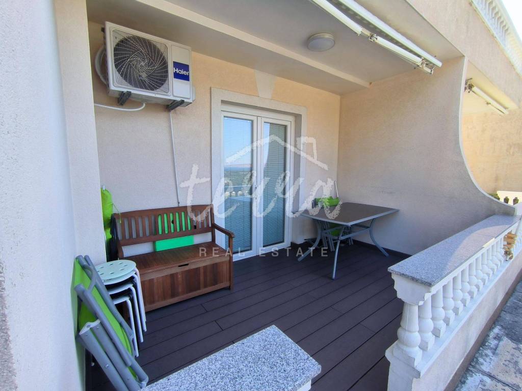 Apartment for sale 36.50m2 in Karlobag, in a great location with a sea view and close to the beach. The apartment is located on the ground floor of a house with a swimming pool. Open sea view and close to the well-maintained city beach. It consists of a separate part, kitchen, dining room, living room, hallway, toilet-bathroom, bedroom and terrace. The apartment has a parking space. All tenants have access to a shared swimming pool and barbecue!