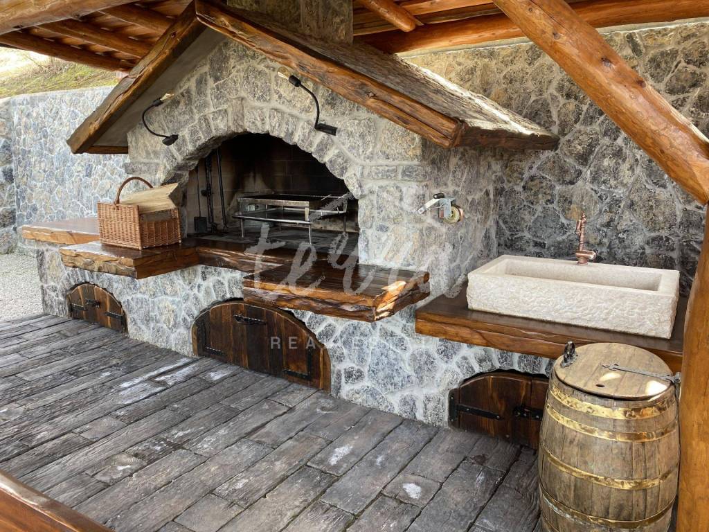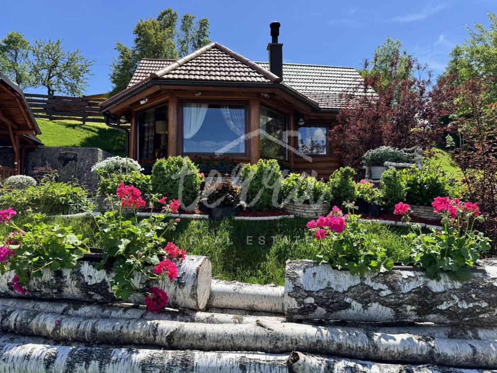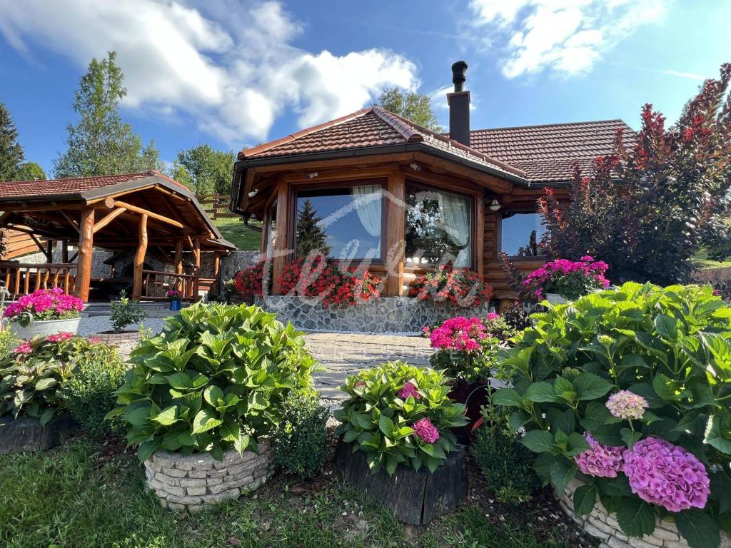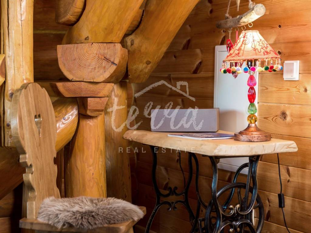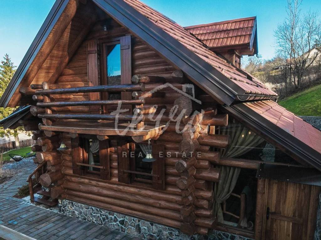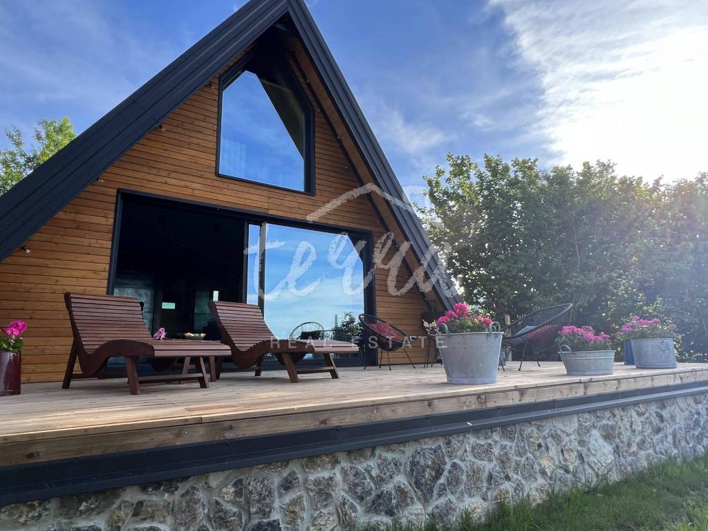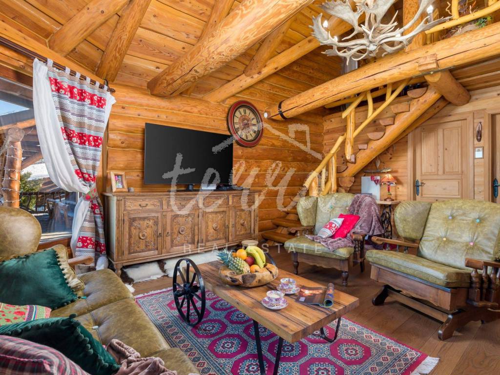 The main building is a wooden house, fully furnished and decorated with lots of taste and love. Next to the house is a large covered area for socializing with a grill, also built in the indigenous style. In front is a swimming pool with a sunbathing area. The second building, which is on a hill, is a wellness house with a jacuzzi with deck chairs and a shower, while on the first floor there is a sauna for 4 people. Everything is in glass because the view is spectacular.