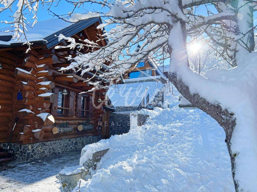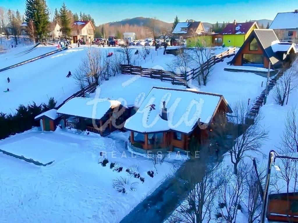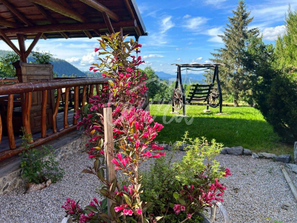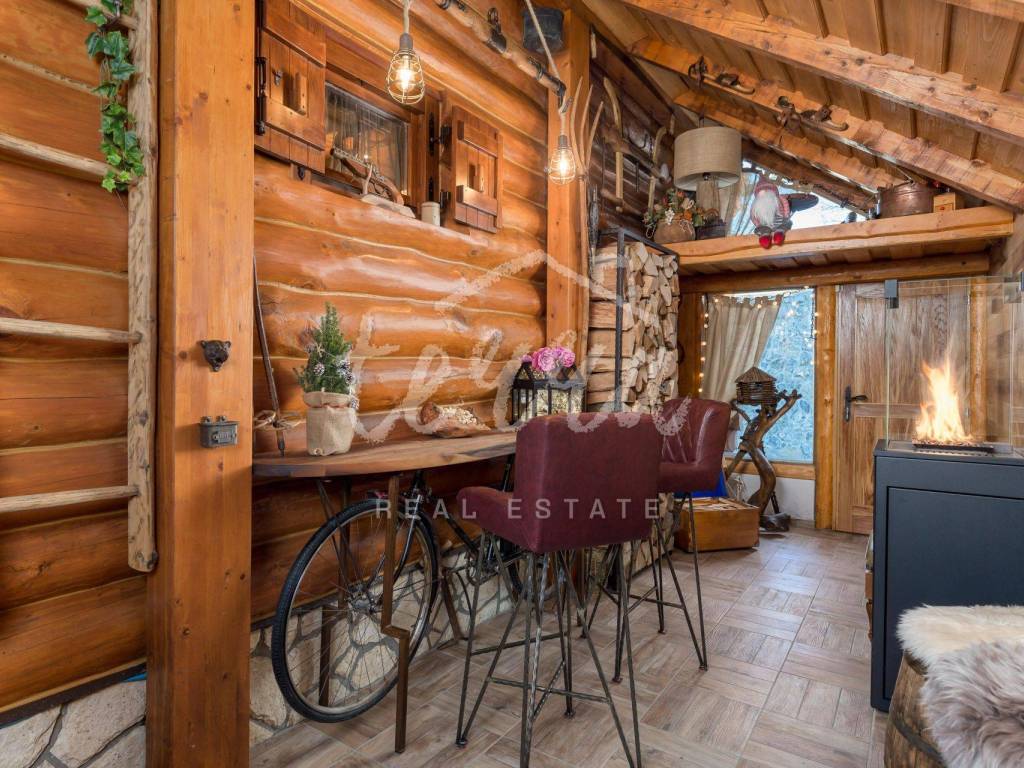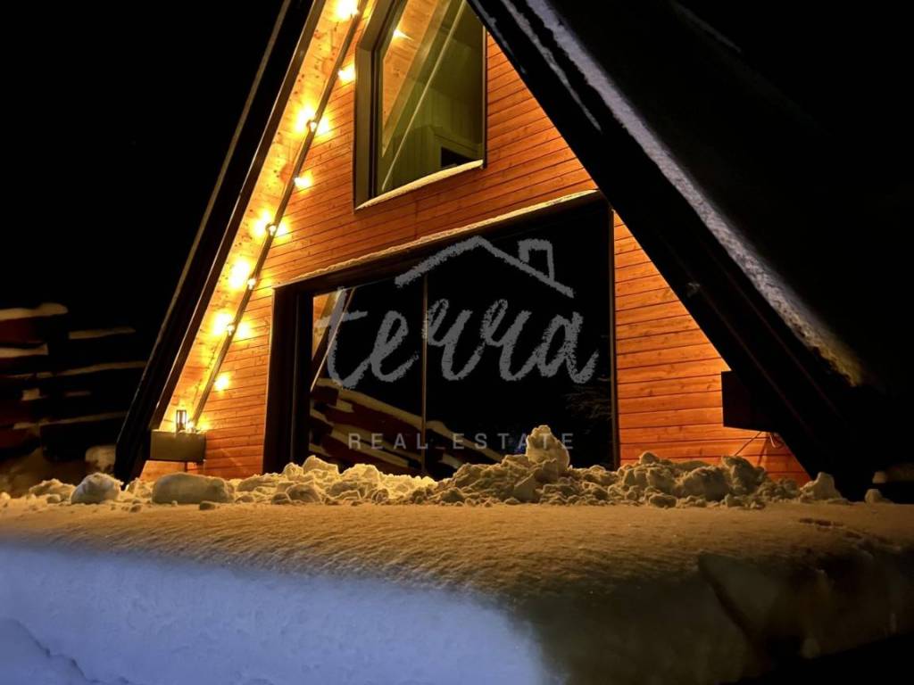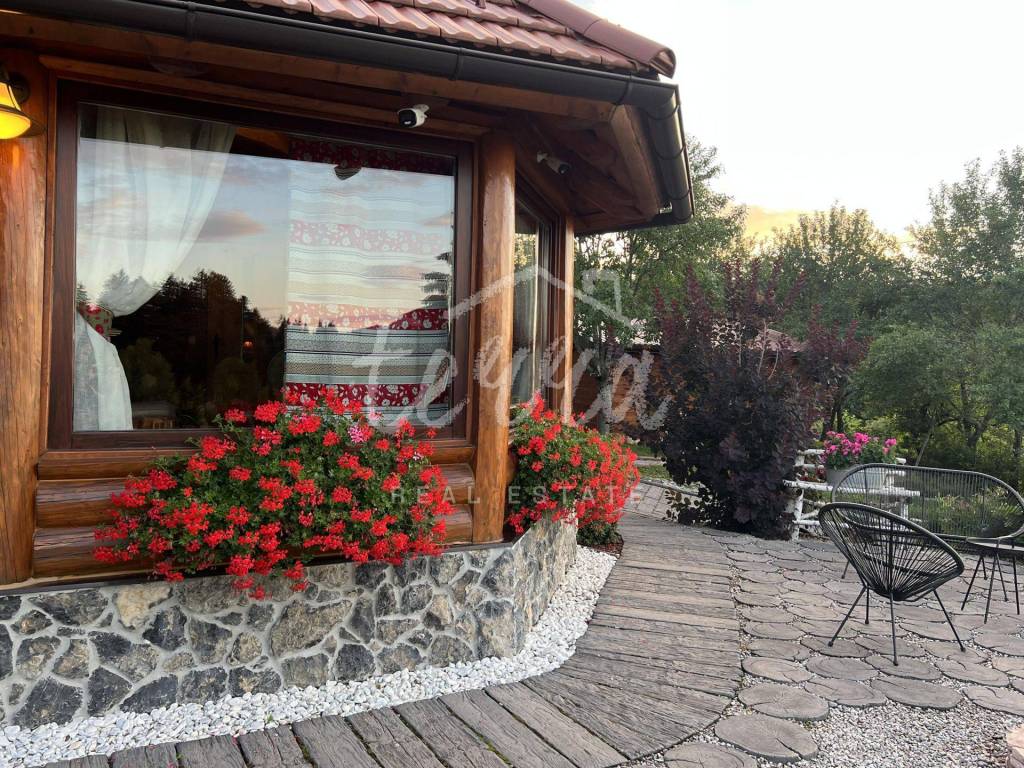 The main building is a wooden house, fully furnished and decorated with lots of taste and love. Next to the house is a large covered area for socializing with a grill, also built in the indigenous style. In front is a swimming pool with a sunbathing area. The second building, which is on a hill, is a wellness house with a jacuzzi with deck chairs and a shower, while on the first floor there is a sauna for 4 people. Everything is in glass because the view is spectacular.