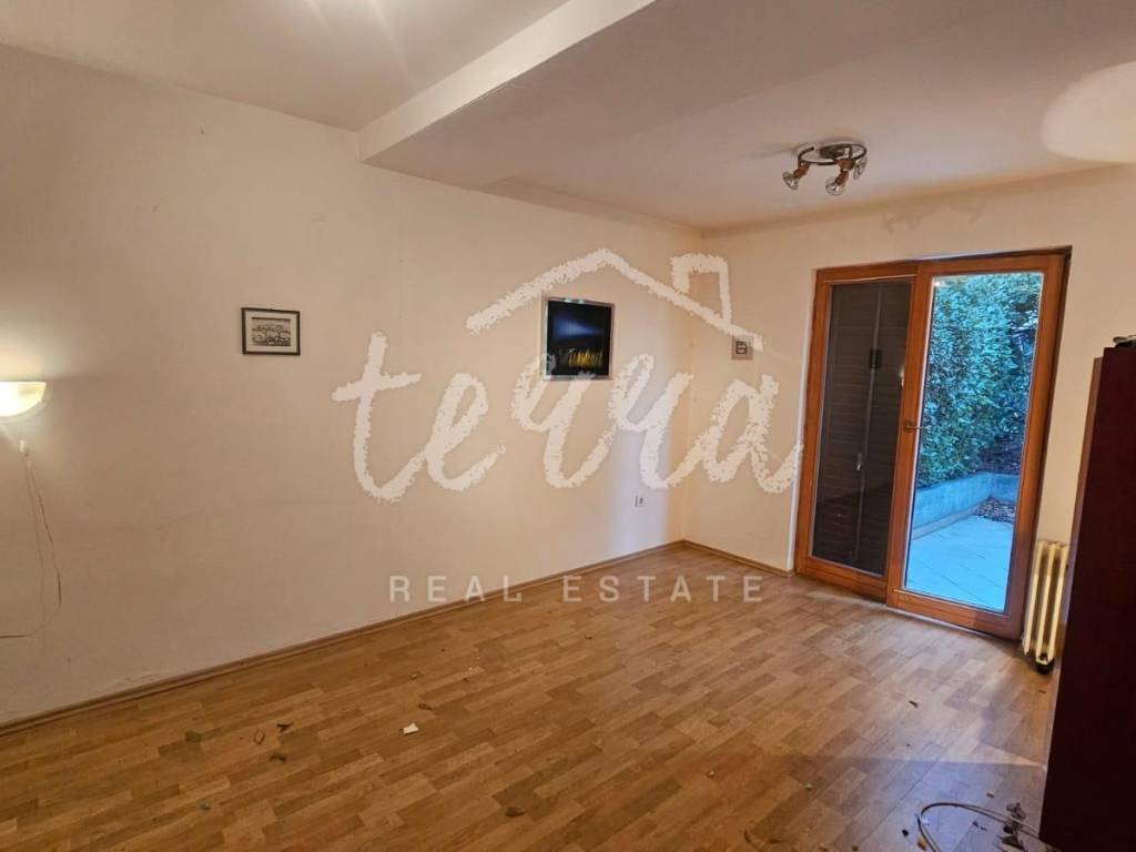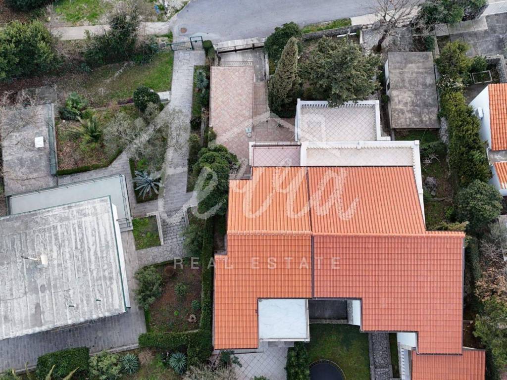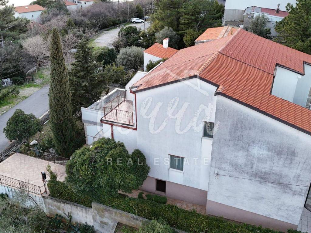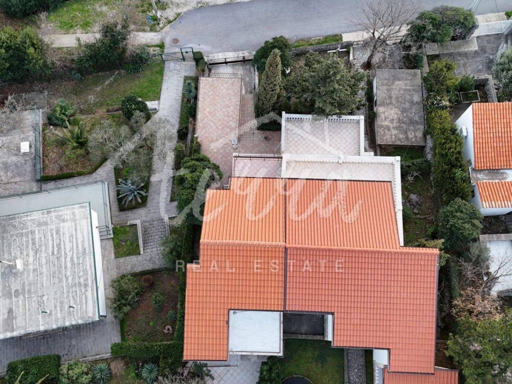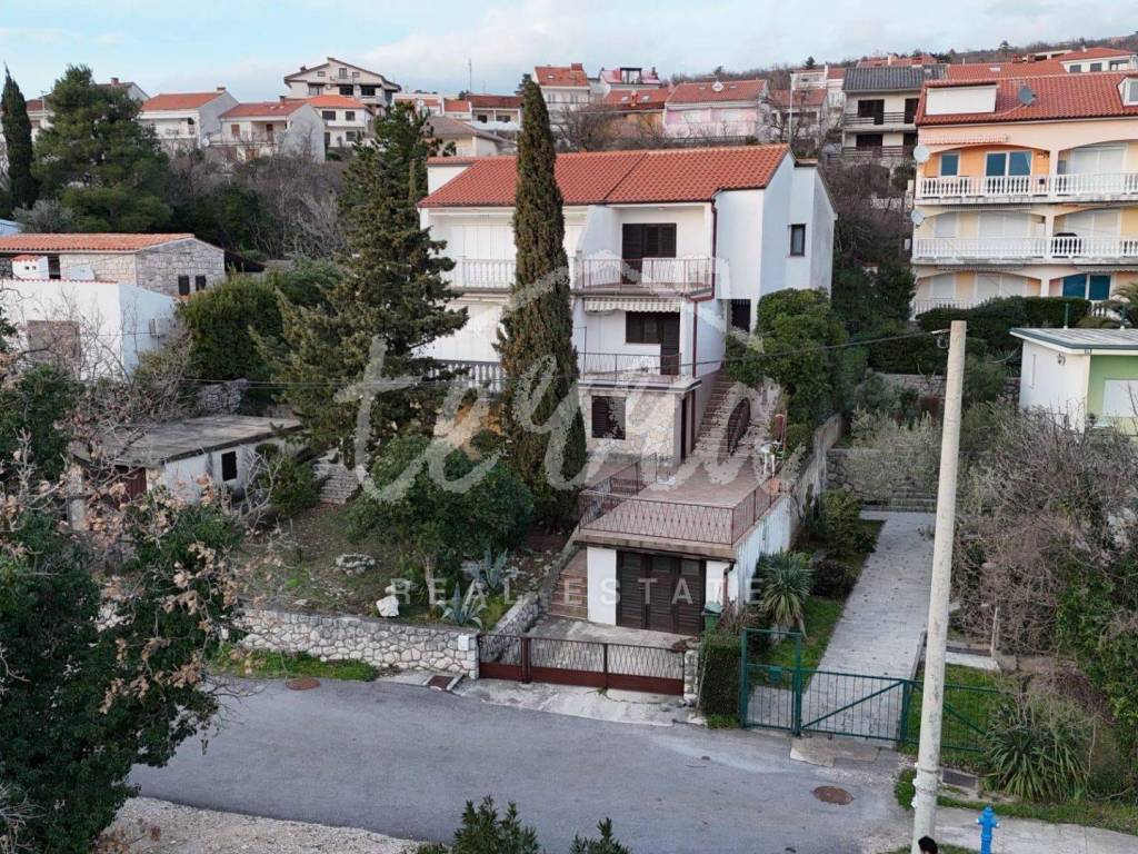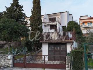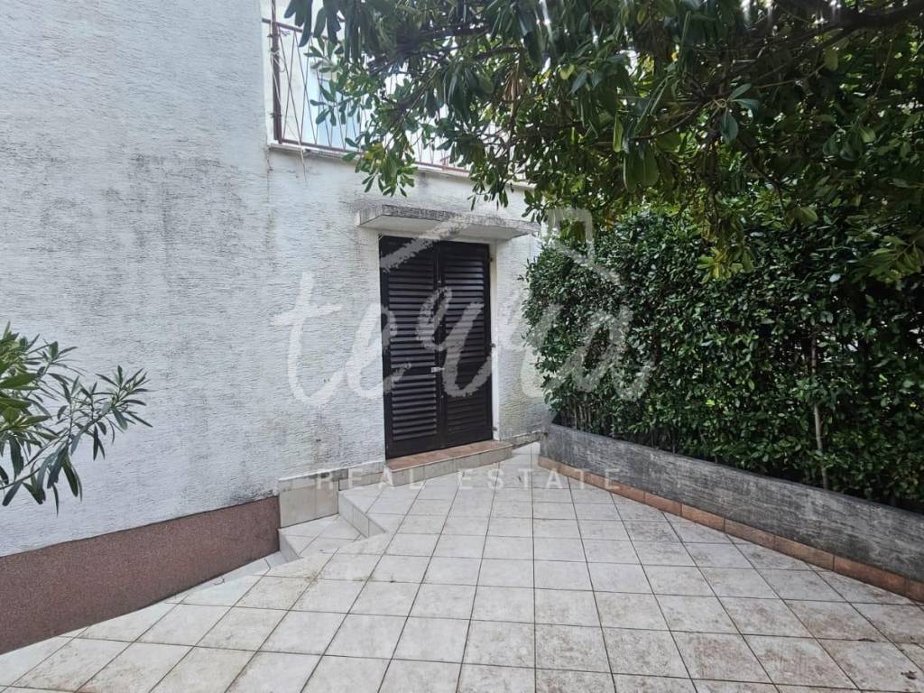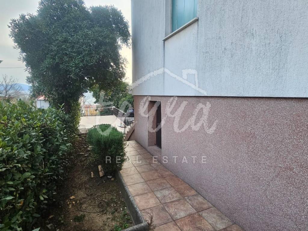 South-facing at the end of a dead-end street, it offers plenty of sun and enjoyment of the property itself. Inside the fenced yard is a garage and parking for another car. The house is spread over three floors. On the ground floor there is a summer kitchen with access to a paved terrace.