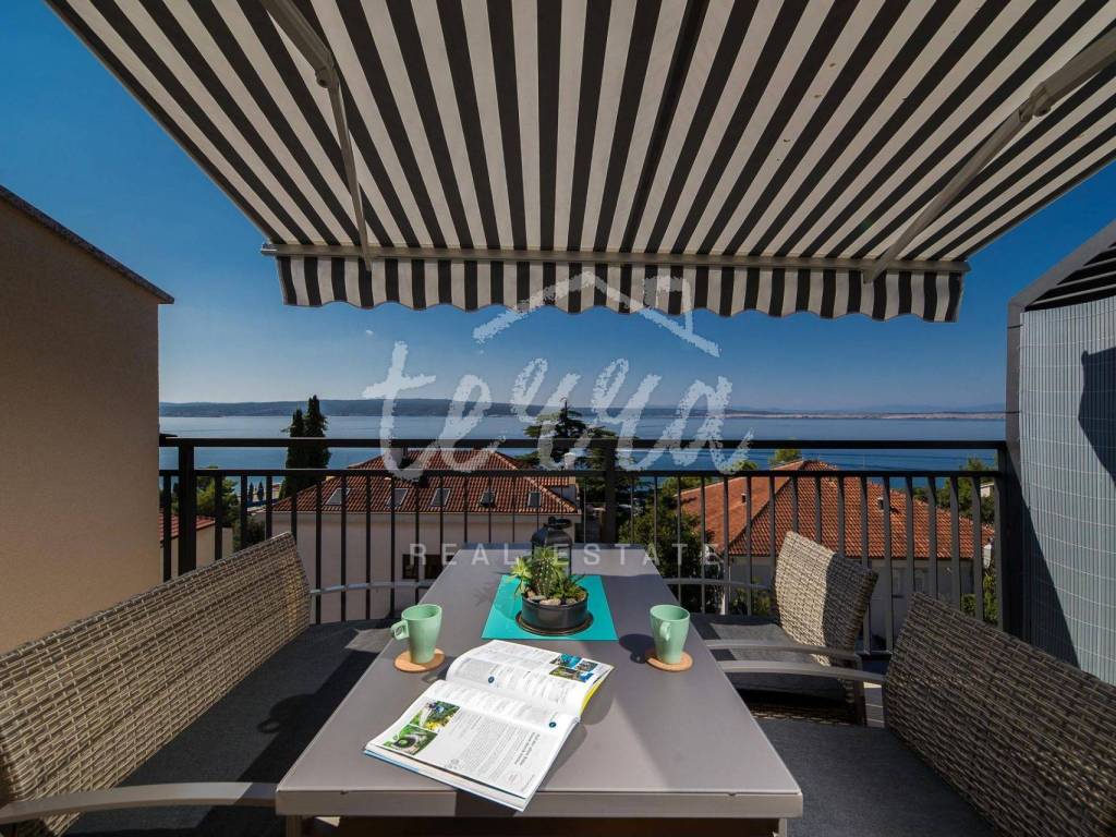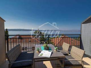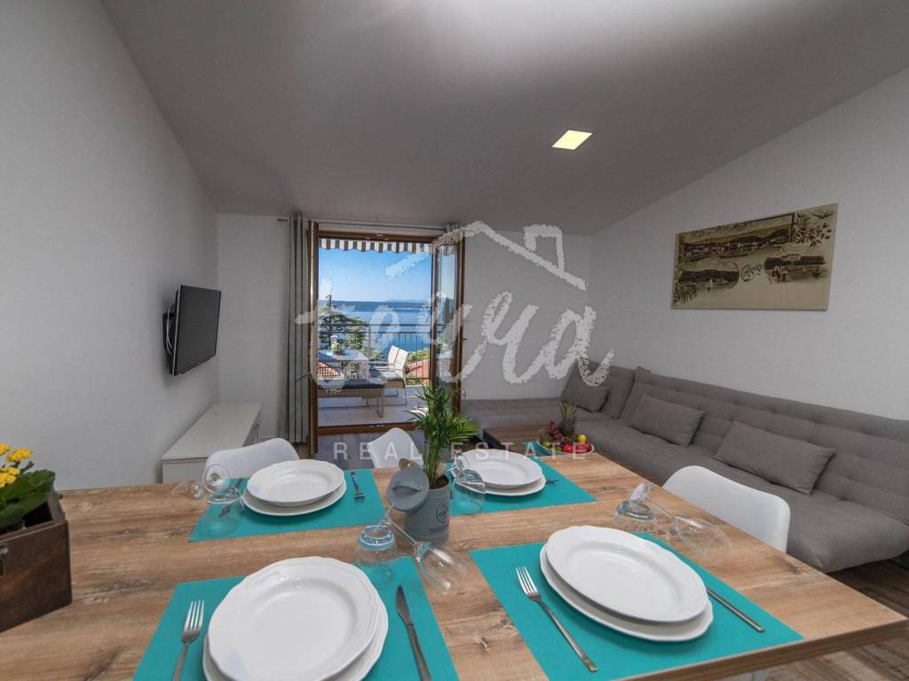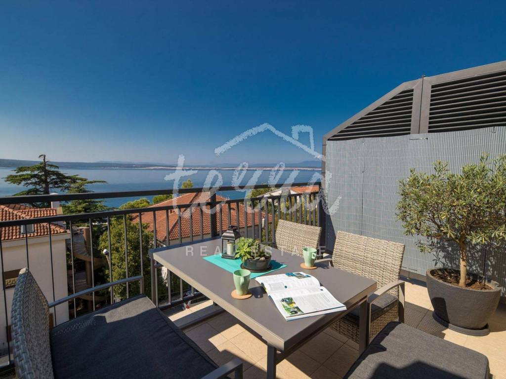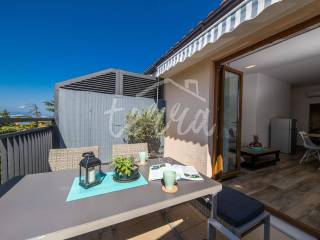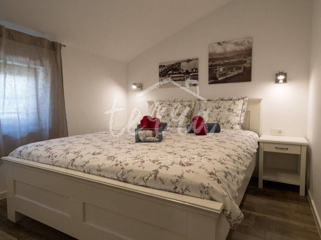 Located in a prime location, not even 50 meters from the main sandy beach, an apartment is for sale on the top floor of the building with 8 residential units. The apartment consists of two bedrooms, two bathrooms, living room and kitchen, and a terrace.