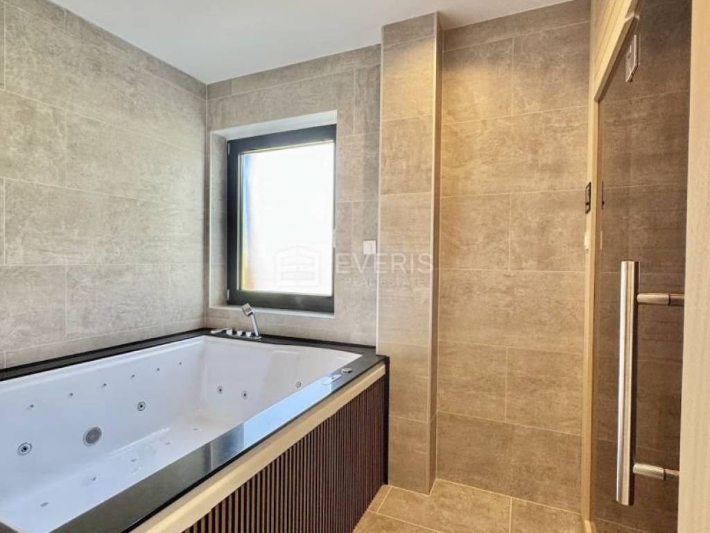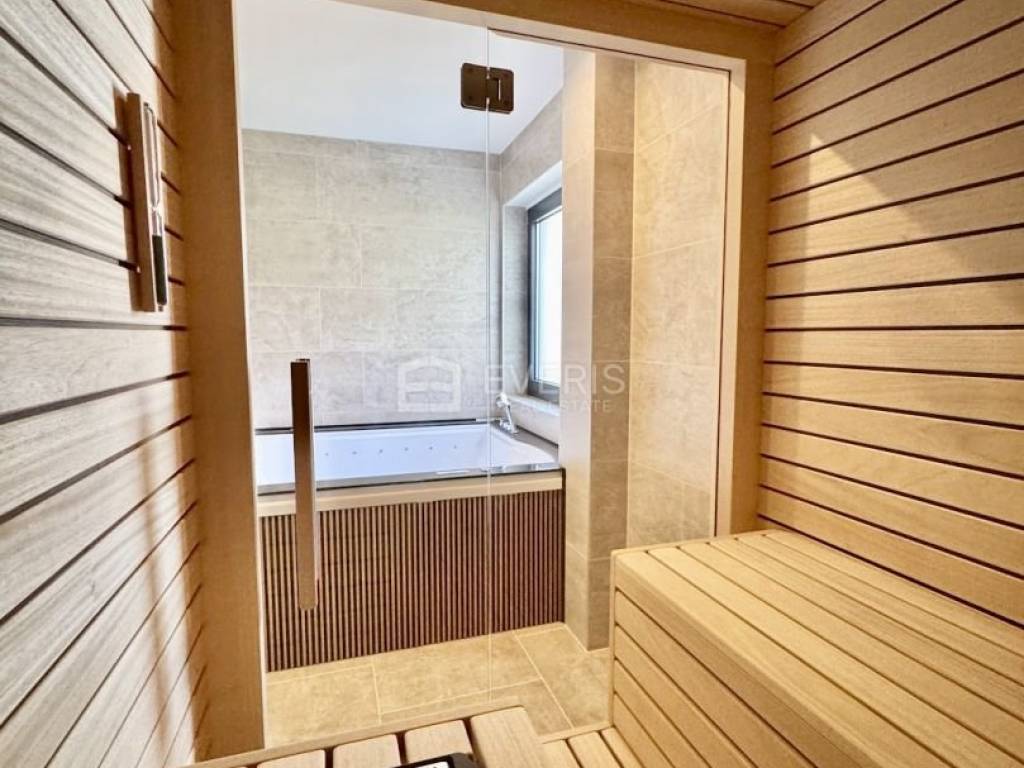 As part of one of the bathrooms, there is also a small spa oasis – a hydromassage bathtub (jacuzzi) and a sauna.