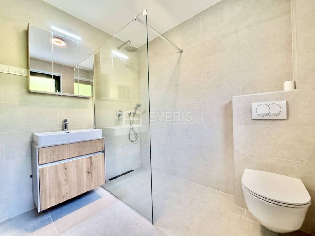 We present an exceptional first - floor apartment in a residential building constructed in 2021.