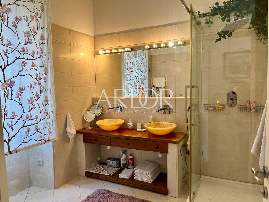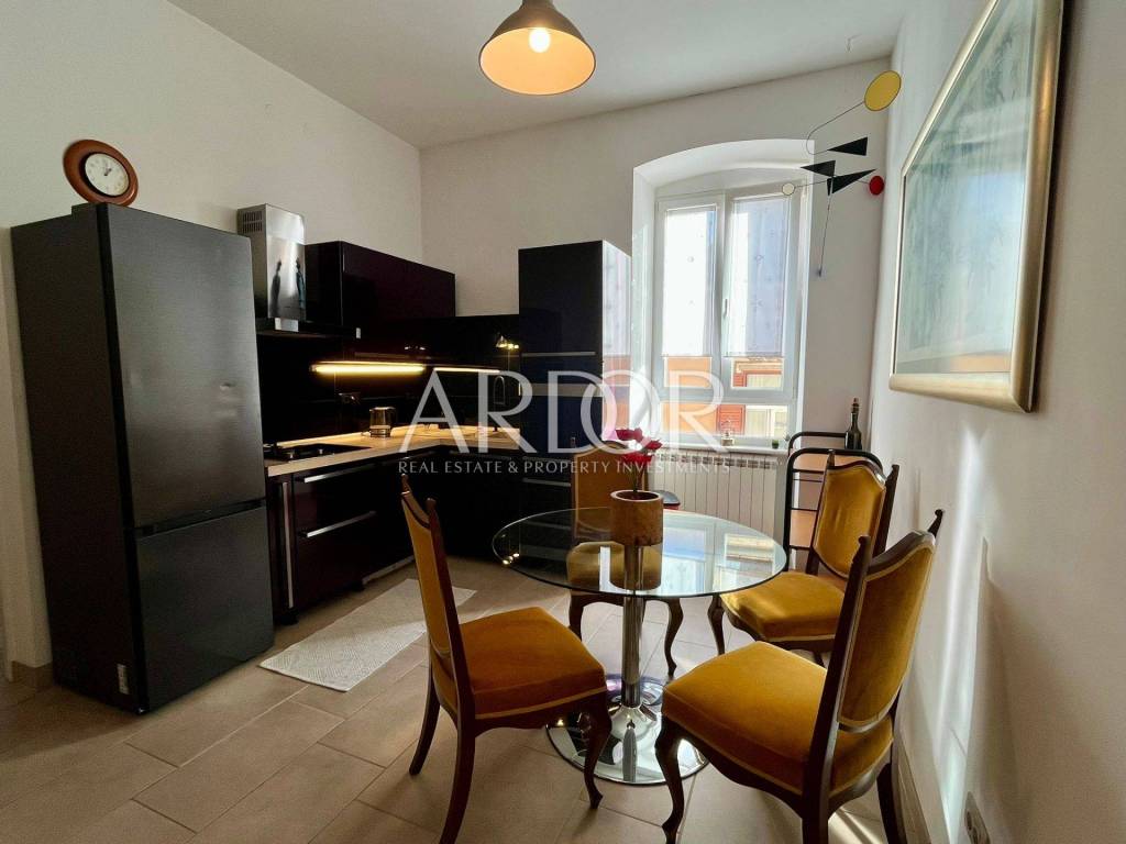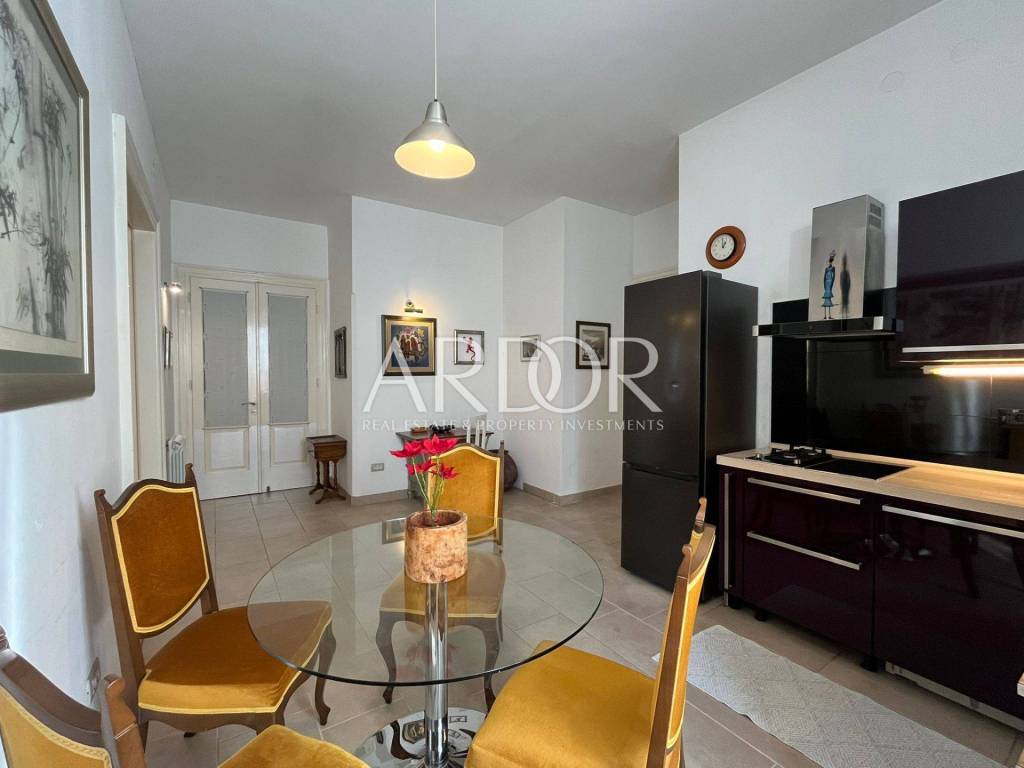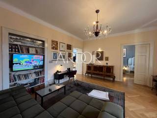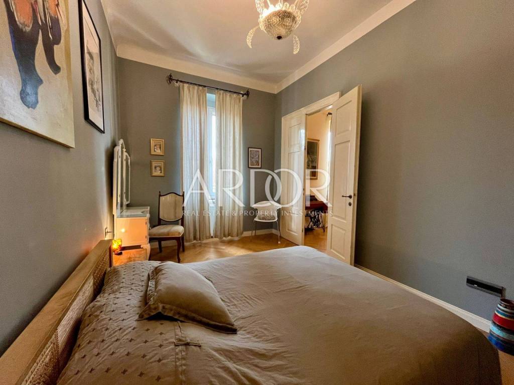 In a very frequent and practical location, a completely adapted and meticulously decorated gentleman's apartment with a total living area of 119.19 m2 on the 2nd floor of the building is for sale. The south-facing apartment consists of an entrance hall, two bathrooms and a separate toilet, three bedrooms, a kitchen with a dining area, and a spacious living room with access to a lovely balcony. A few years ago, it was completely renovated and a concrete mezzanine structure was poured, new oak parquet floors, underfloor heating in the bathroom, gas central heating, PVC windows and air conditioning. The building in which it is located is of very high quality construction. It is located just a few minutes from Rijeka's famous Korzo promenade. The apartment is divided into two residential units: a studio apartment with a bathroom and a two-room gentleman's apartment.