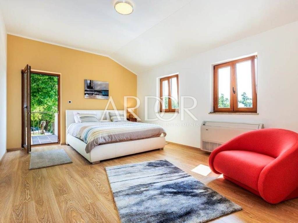 Veprinac, bellissima villa in affitto in una posizione tranquilla circondata da un bosco privato e una splendida vista sul Quarnero. Veprinac è una cittadina medievale ad Abbazia nella contea di Primorje-Gorski Kotar. Veprinac si trova sulle pendici del Monte Maggiore, sopra Opatija. È protetto dalle tempeste dalle montagne ed è un'ottima alternativa per scegliere un posto dove alloggiare invece che nel centro di Abbazia. Le passeggiate per Abbazia e il Parco naturale del Monte Maggiore offrono agli escursionisti e agli escursionisti la bellezza della vegetazione carsica e mediterranea. Il clima è submediterraneo e ci sono più precipitazioni e giornate nuvolose all'anno che nella parte meridionale dell'Adriatico.