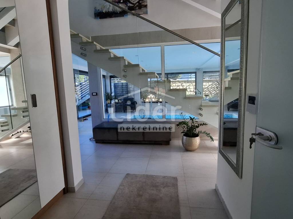 For sale is an exclusive villa located in a peaceful setting not far from Crikvenica, perfect for enjoyment, vacation, or investment in tourist rental.This elegant property spans three floors – ground floor, first floor, and attic – and is particularly distinguished by its combination of luxury, comfort, and modern design.Property description:Ground floor: indoor heated pool, two spacious terraces, living room, kitchen with dining area, toilet, and loggia.First floor: three bedrooms, each with access to a large terrace, bathroom, and sauna for complete relaxation.Attic: special 1-bedroom+living room apartment with terrace and beautiful view.The villa is fully furnished with top-quality custom-made furniture, crafted with special attention to detail and functionality.In the landscaped garden, there is an outdoor pool and sunbathing area, ideal for summer enjoyment.This villa offers complete privacy, luxury, and comfort – a true gem of the Adriatic coast.