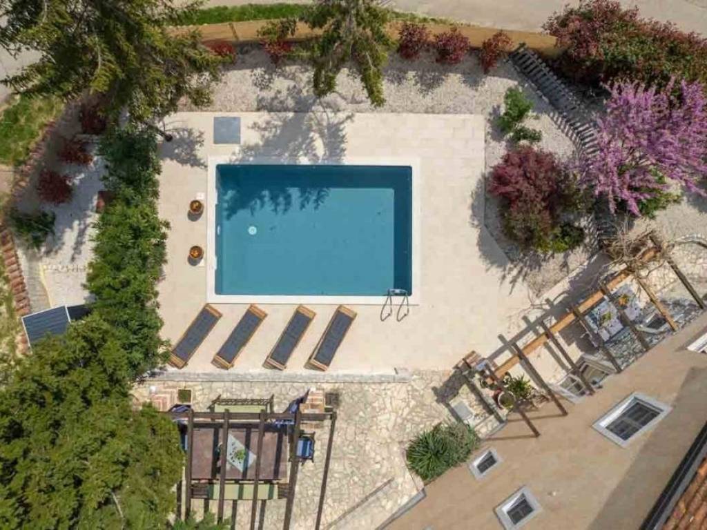 The pool is equipped with a modern pump and a new cover, while there is an option to use the house as two separate residential units, which makes it suitable for renting or staying with several families.