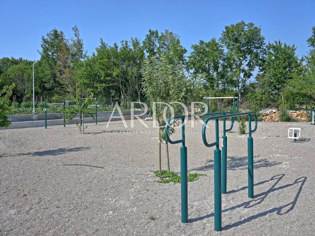 Villa Elena seamlessly blends luxury and functionality, spanning 359 m² on a spacious 880 m² plot. The villa also includes 1/4 ownership of a 5600 m² recreational complex, featuring a children's playground, outdoor fitness area, illuminated courts for tennis, soccer, basketball, volleyball, bocce, and an eco-garden for growing vegetables.