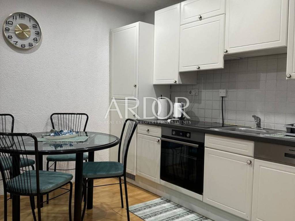 The apartment is bright and very comfortable, and consists of two bedrooms, a living room with a kitchen and access to a balcony, and a bathroom. The apartment also comes with a woodshed, while a shared garden is available for use. The electrical installations have recently been replaced and PVC joinery has been installed, which contributes to better energy efficiency and reduced costs; heating is by radiators. The apartment is sold fully furnished and the ownership is clear.