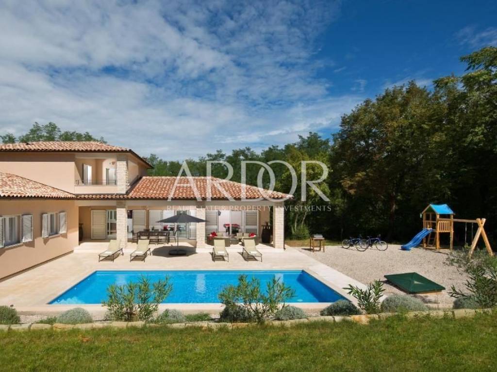 In the peaceful Istrian village of Kršan, surrounded by vineyards and unspoiled nature, an exclusive 5-star luxury villa is for sale. This impeccably designed property offers complete privacy, exceptional comfort, and a sophisticated atmosphere, ideal for year-round living, holidays, or as an investment in the tourism sector. The villa operates successfully all year round and can be acquired through a company takeover.