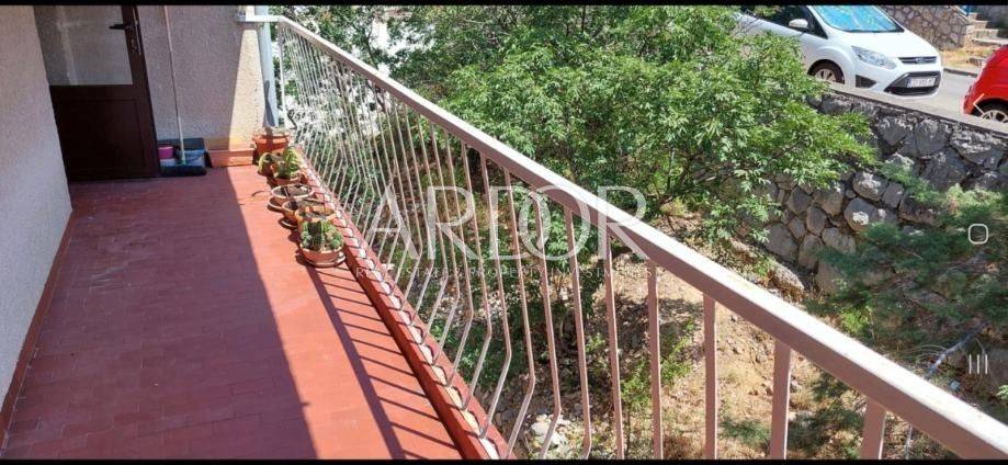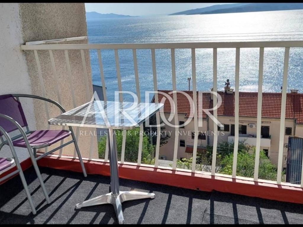 The apartment offers panoramic views all the way to Rijeka and consists of a spacious bedroom with a large sliding wardrobe, a living room with a sofa bed, a kitchen, a bathroom, and two balconies – one belonging exclusively to the apartment and the other for use. The larger balcony is spacious enough to accommodate 4–5 people, ideal for relaxing outdoors.