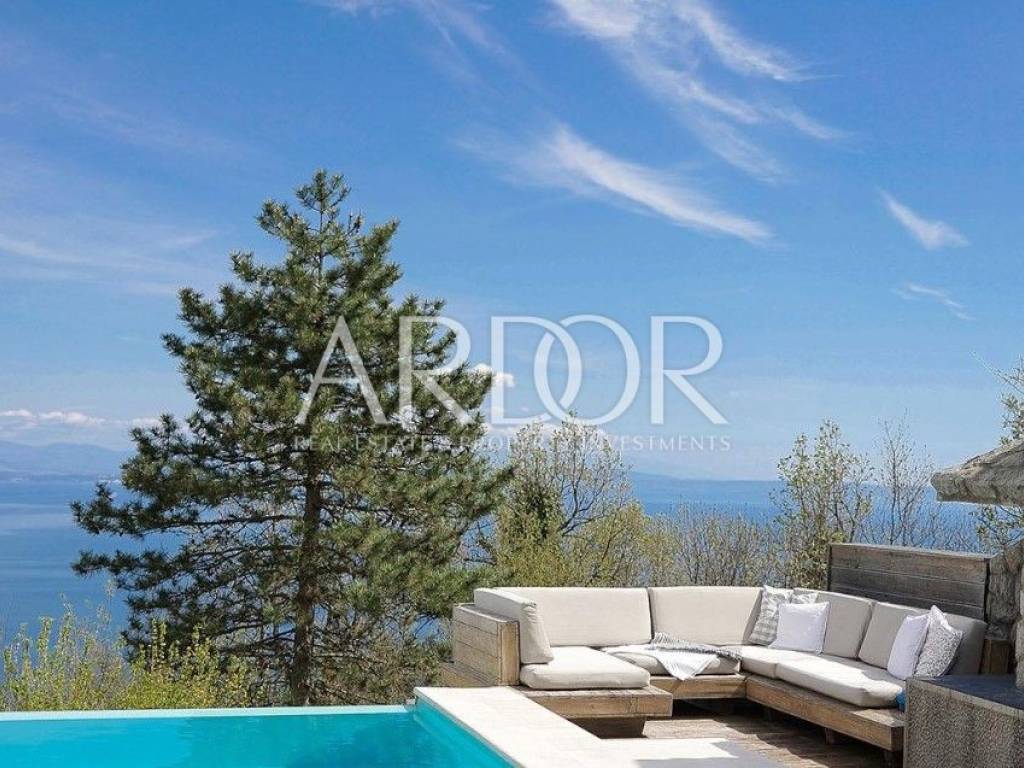 Veprinac, a charming house with a special layout with a heated pool and a beautiful panoramic sea view.