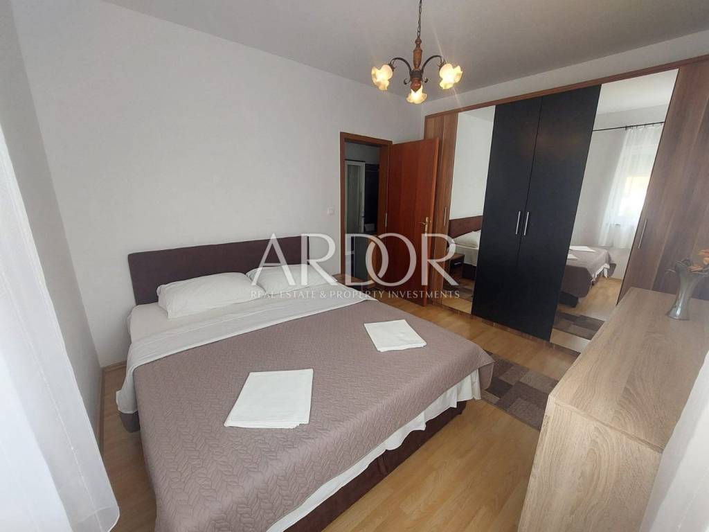 For sale is a two-bedroom apartment of 65.40 m² in the very center of Novi Vinodolski, just a few steps from the sea. The apartment is located on the first floor of a well-maintained building and consists of a kitchen with a dining area, a spacious living room, and two comfortable bedrooms. The apartment also includes a designated parking space, which adds to the comfort and convenience of living in the city center. The property is in close proximity to the marina, shops, and all necessary amenities, in a quiet and pleasant part of this picturesque coastal town, ideal for living or a seaside holiday.