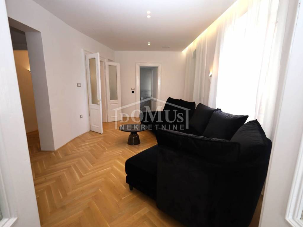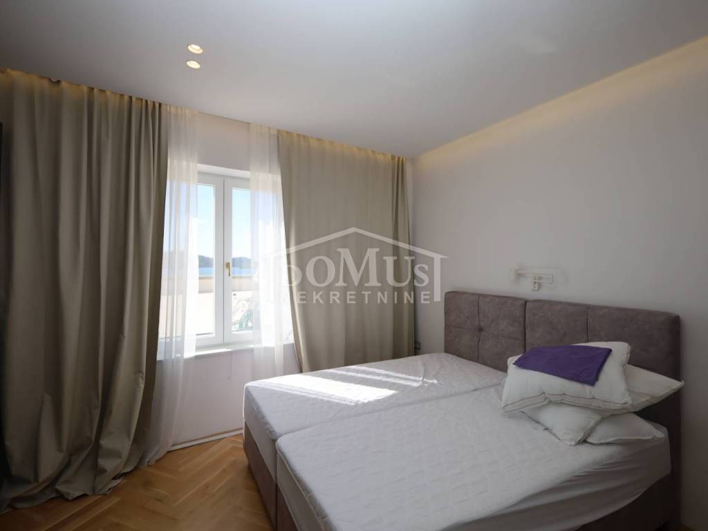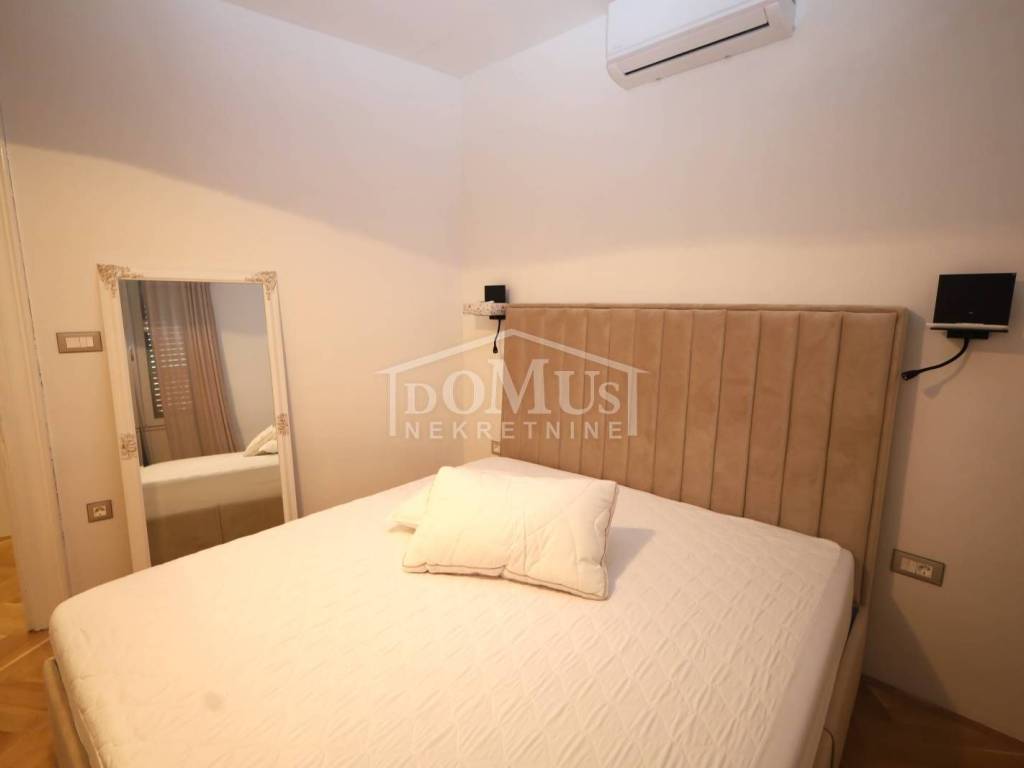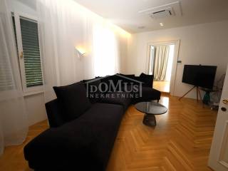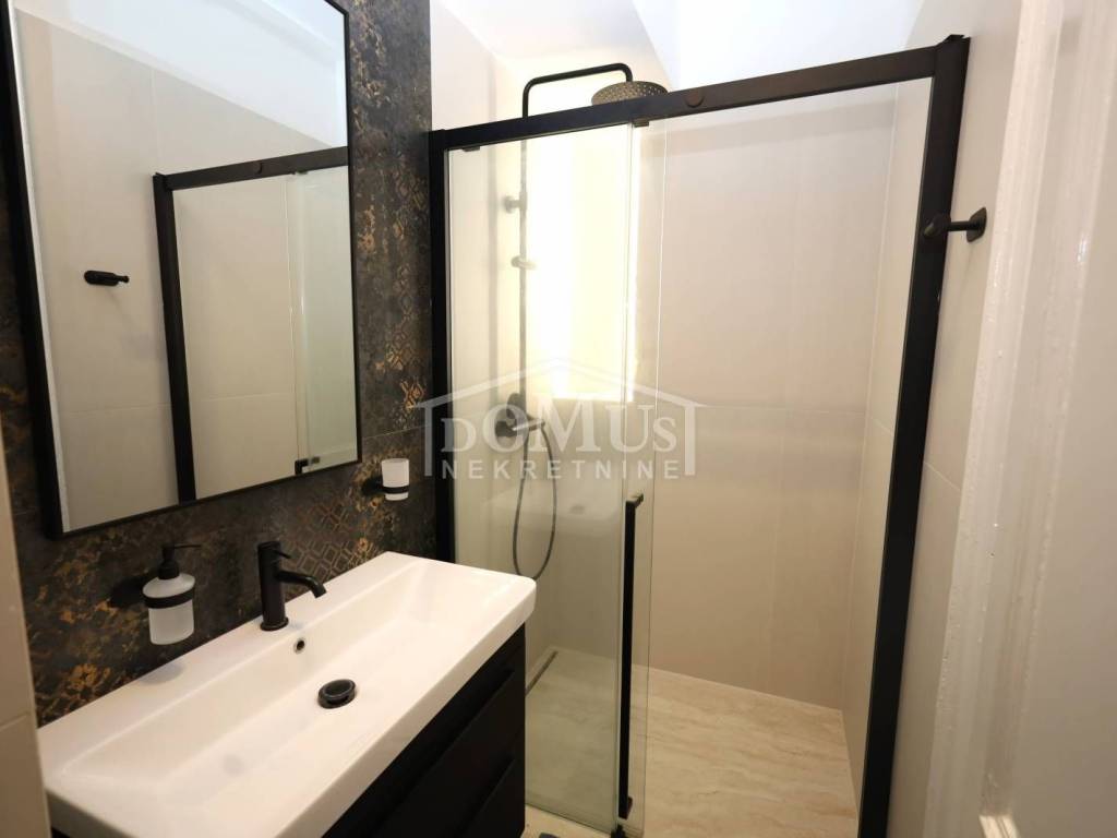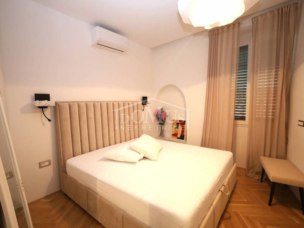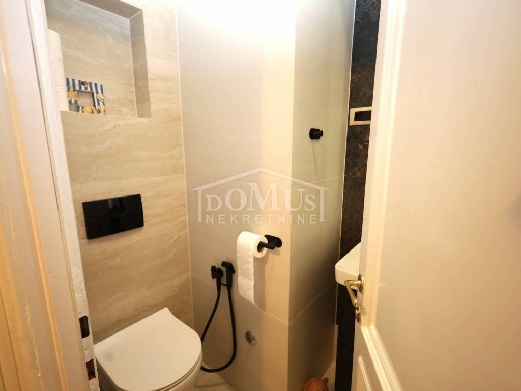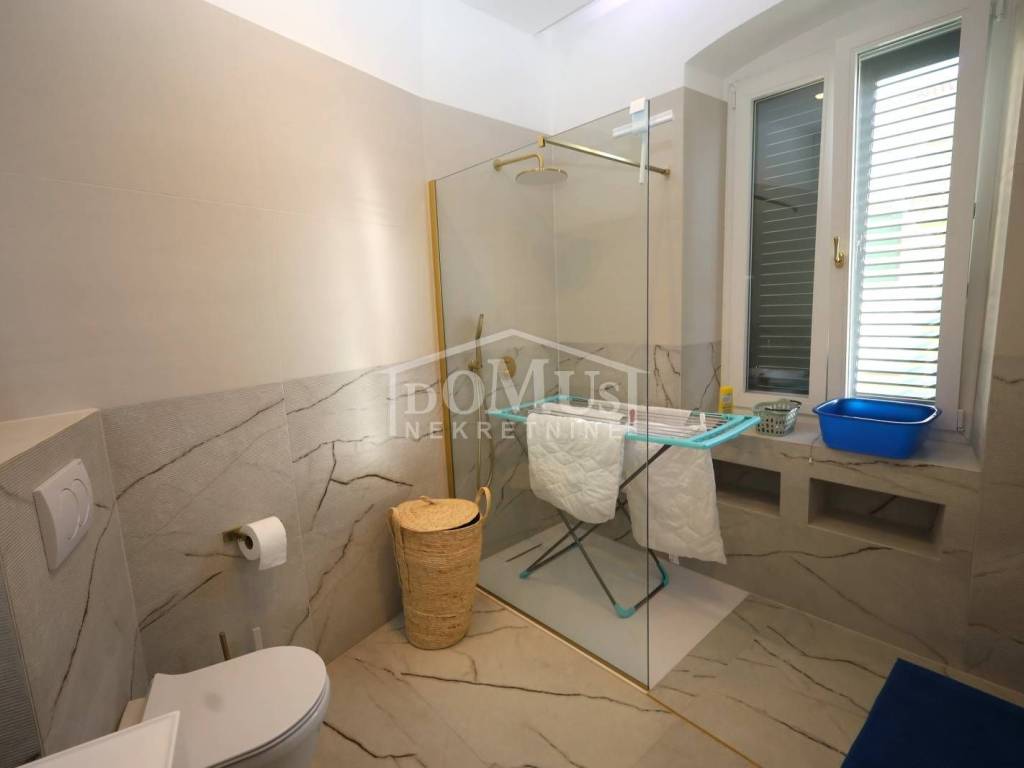 Šibenik – a modern apartment with a total usable area of 75.12 m², located in the heart of the old town, fully renovated and finished with top-quality materials. The apartment is on the ground floor of the building and consists of a hallway, two bedrooms (one of which has its own bathroom), a separate bathroom, and a spacious living room with kitchen and dining area. One of the bedrooms faces south and offers a beautiful sea view. The apartment is air-conditioned, and underfloor heating is installed in the bathroom.