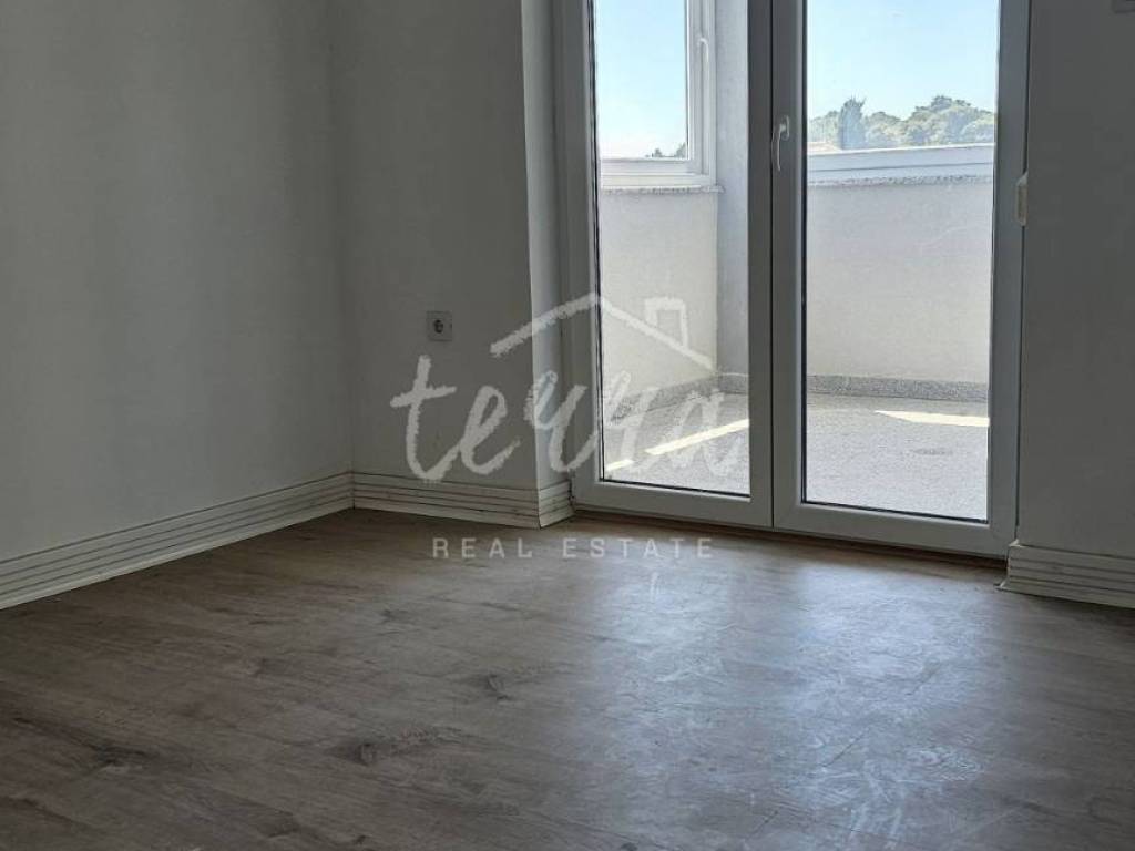 This beautiful apartment is for sale on the 2nd floor of a small residential building. In a quiet environment, yet close to all amenities, this apartment is an ideal investment for family life or for tourism. The apartment consists of an entrance hall, open space kitchen and living room with access to a closed balcony and a beautiful open panoramic view, two bedrooms, one of which has access to a balcony, and a bathroom. Shared storage in the hallway on the first floor. The apartment has its own parking space. Everything is completely new, the apartment is equipped with air conditioning and is being sold without furniture (see attached photos)