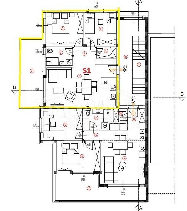Brodarica – New development, residential building with 7 residential units. The building has a total of three floors: ground floor, first floor, and second floor. It is modernly designed and equipped with high-quality features, including underfloor heating in the bathrooms, air-conditioning units for heating and cooling in every room, high-quality joinery, windows with electric roller shutters, mosquito screens, security entrance doors, and modern bathroom fittings. Expected move-in date: summer 2027.