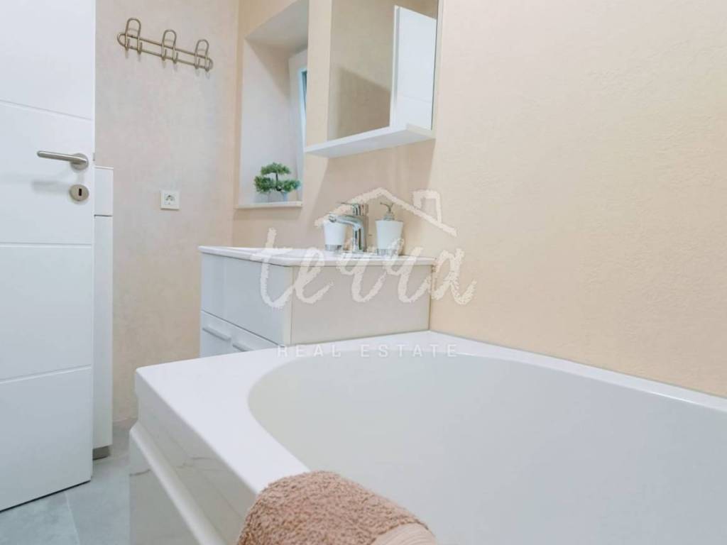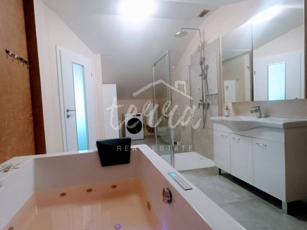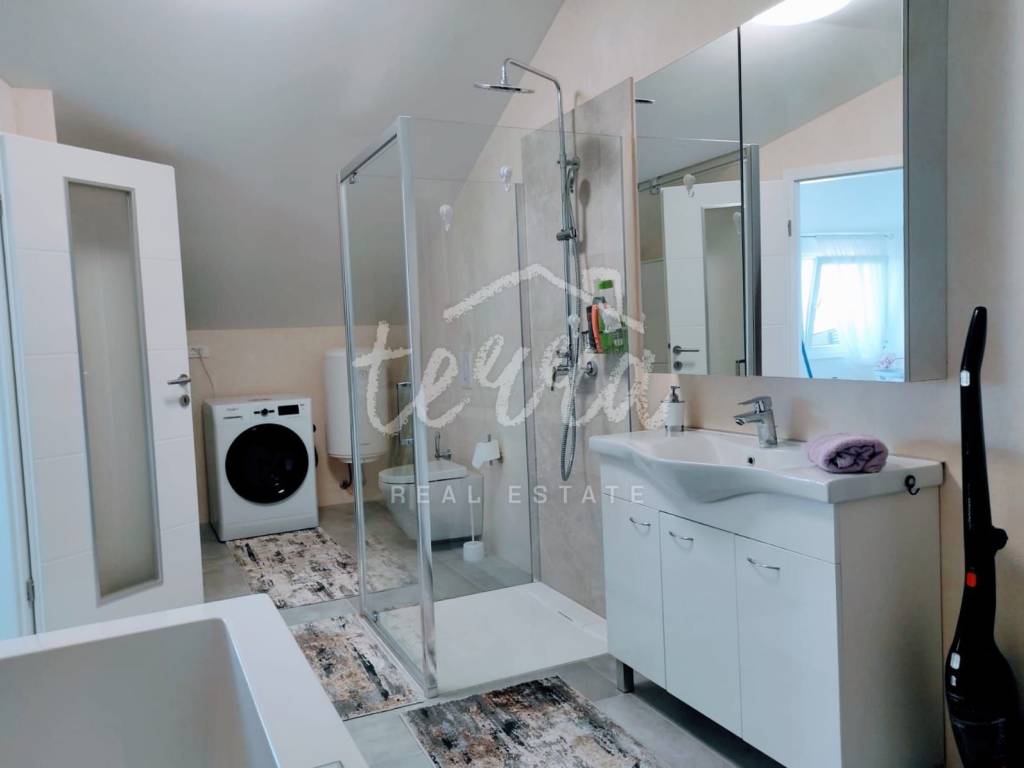 A house of 131m2 is for sale, located in the village of Valtura, in the southeastern part of Istria, and is part of the municipality of Ližnjan. The ground floor has an entrance hall, living room and kitchen. On the first floor there are two bedrooms and two bathrooms. The second floor contains a wellness area for relaxation (closed terrace), a large room that can also be used for exercise, and a bathroom with a hot tub. From the back of the house there is a view of the sea and green space. The exterior consists of a terrace and parking. The proximity of all amenities makes this property an ideal investment in tourism 12km from Pula and 11km from Medulin.