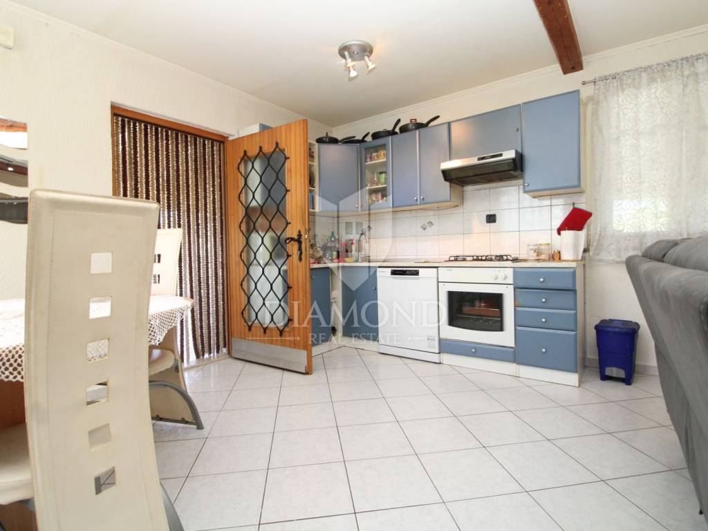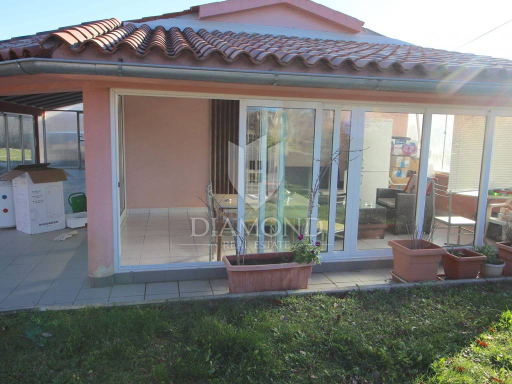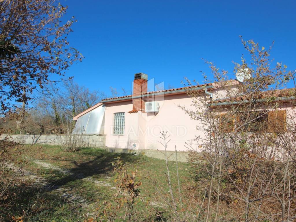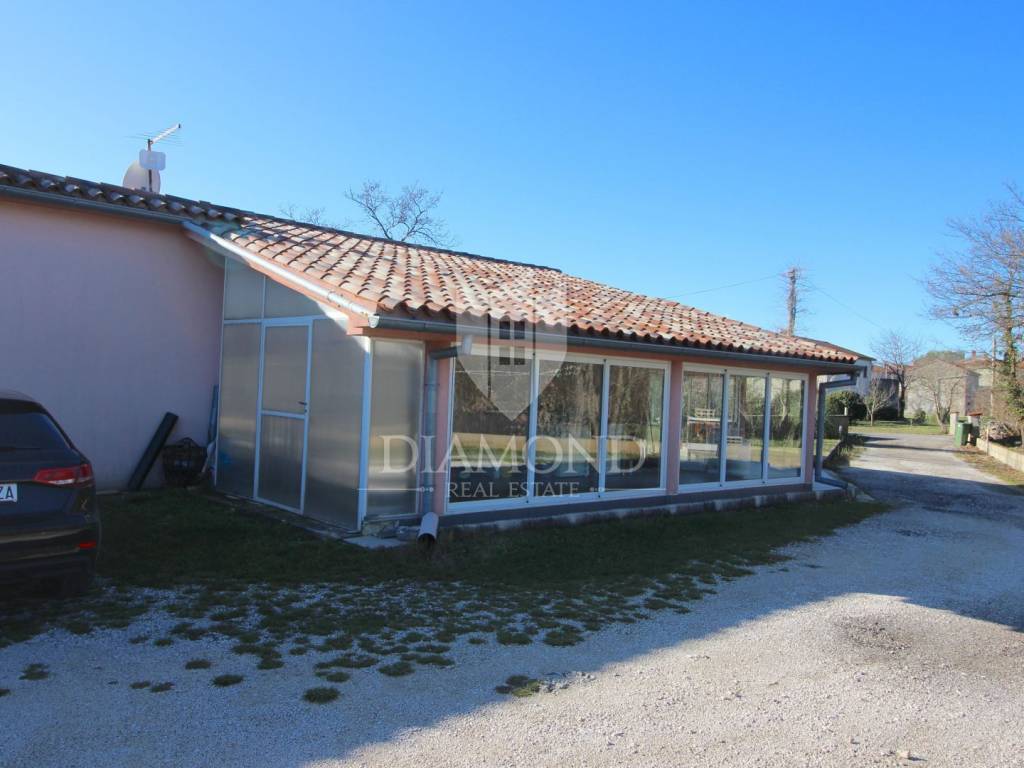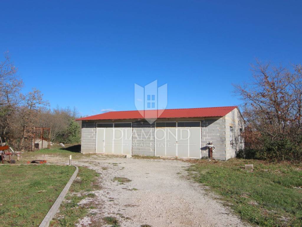 Marčana, surroundings, house with a spacious garden on the edge of the village. This nice family house is located only 4 kilometers from the center of Marčana. The house is designed as a single-storey house with an area of 141 m2, and consists of a living room, a kitchen with a dining room, two bedrooms, a bathroom and a large closed terrace. The property is located on the edge of a small settlement and is surrounded by nature and greenery. The spacious garden extends to 26,288 square meters, of which about 4,800 m2 is within the construction zone. Next to the house is a garage of 99 m2, which is currently used as a workshop. The building is also connected to water and electricity. The property is ideal for all those who are looking for a spacious garden with the possibility of building, and the existing garage is excellent as an auxiliary facility that can have different purposes such as workshop, warehouse, tavern - according to the needs of the future owner. The location offers perfect privacy and peace, and all the necessary amenities are within 5 kilometers.