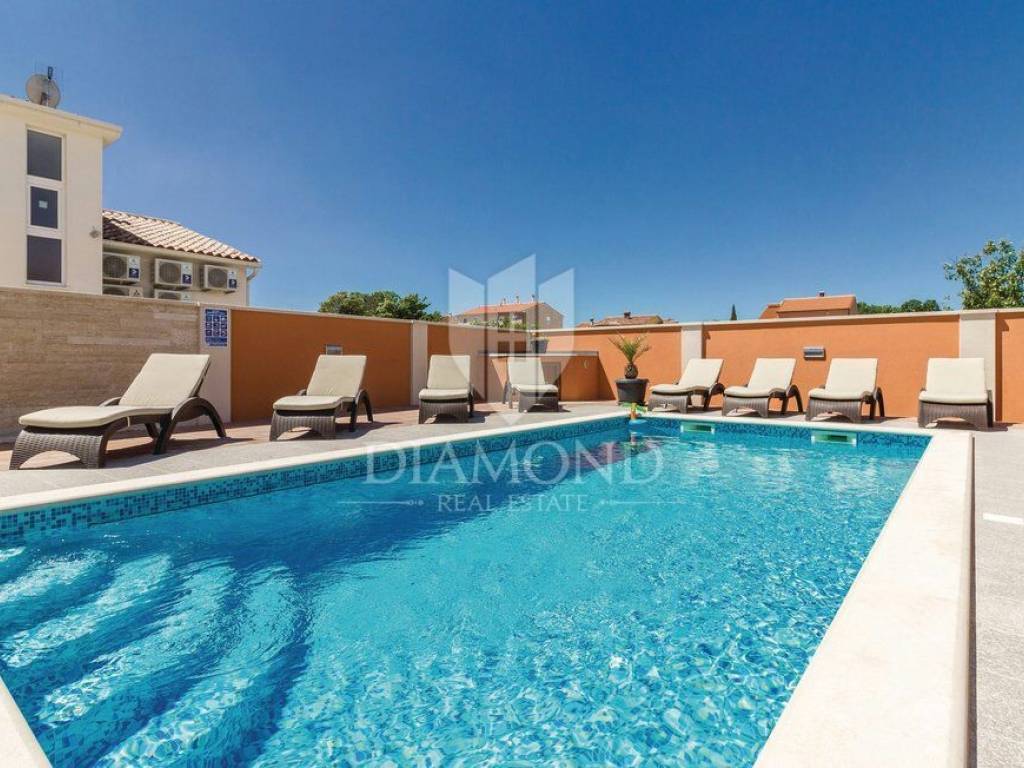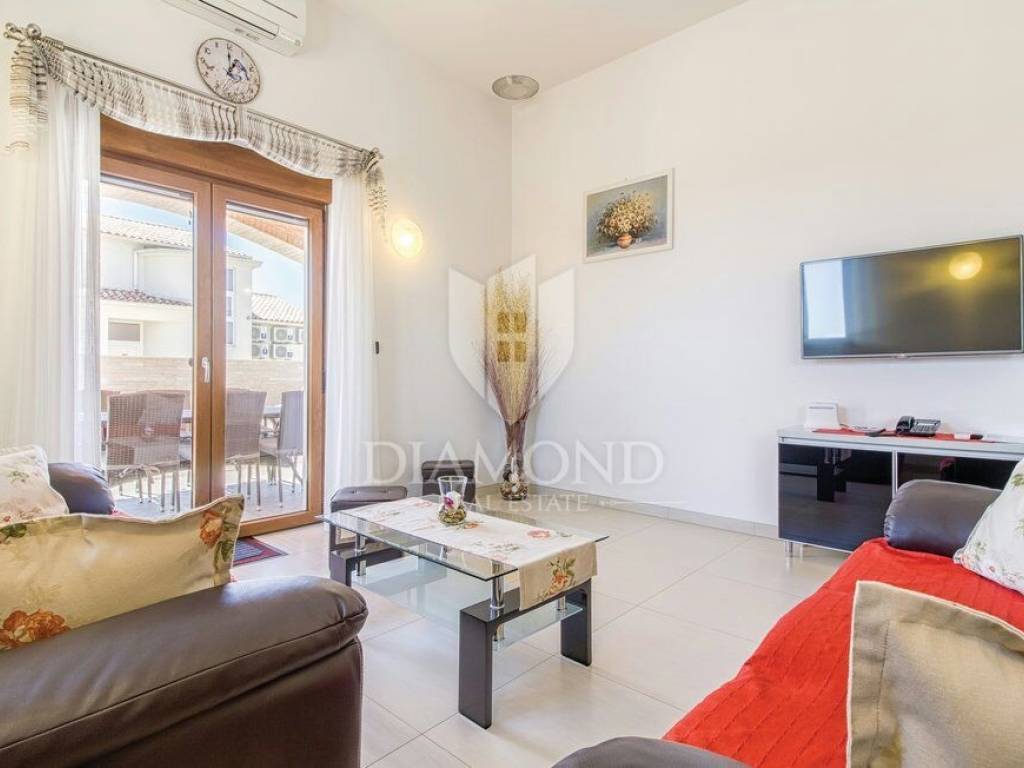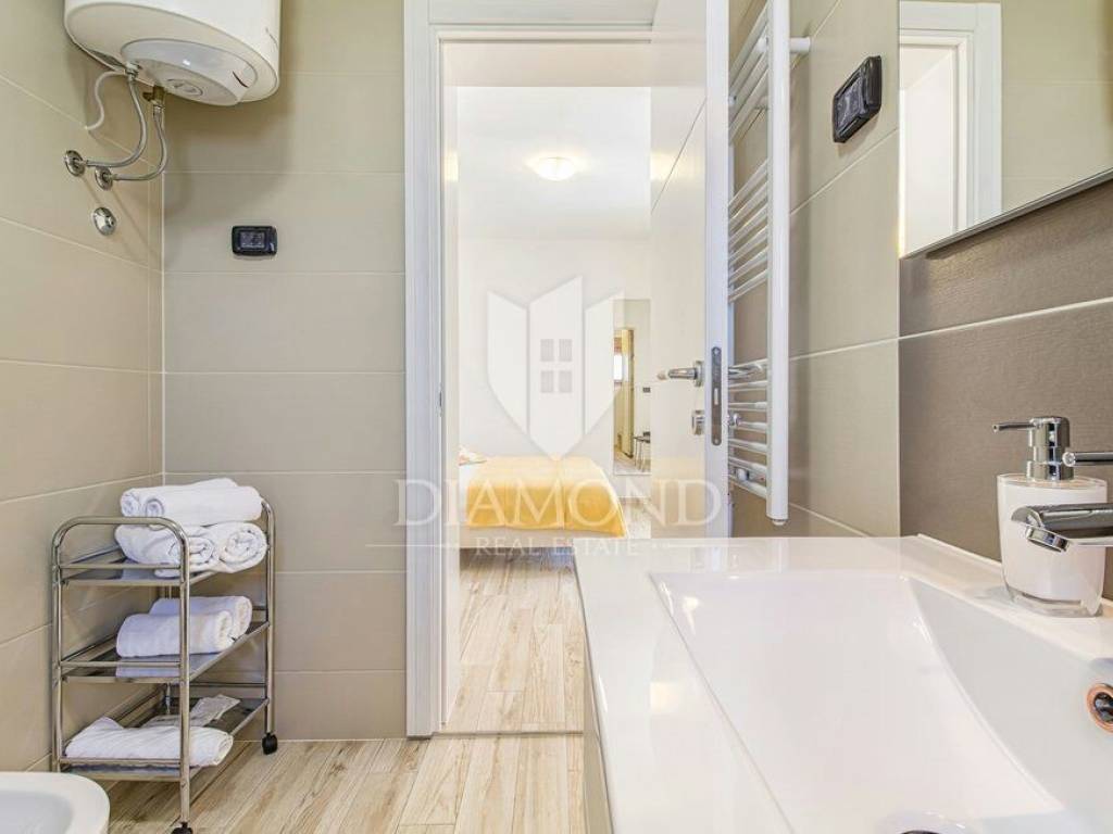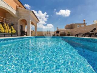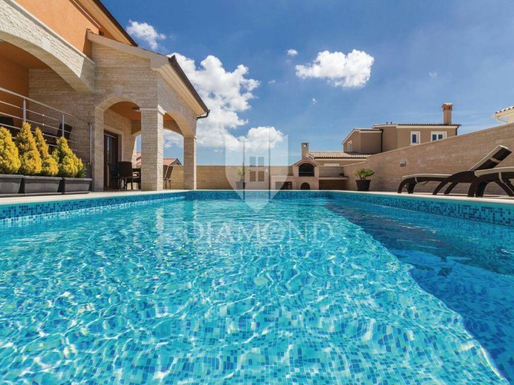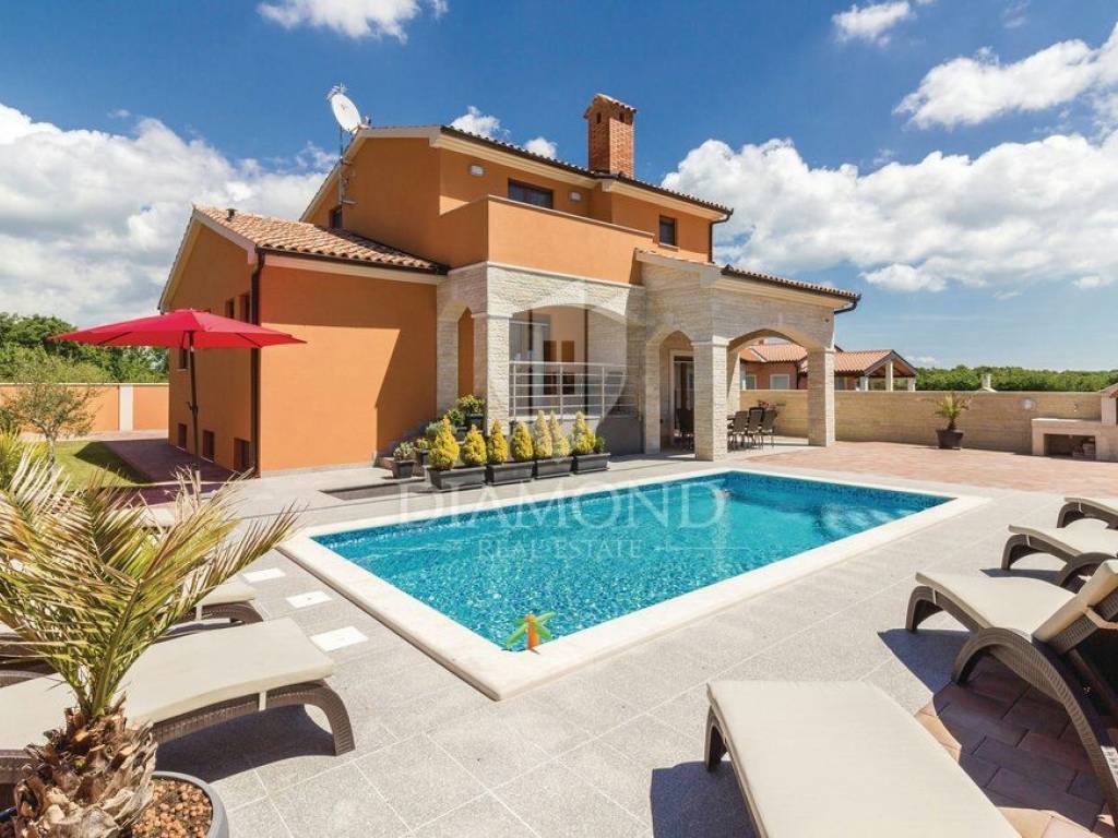 We are selling a beautiful holiday house in the vicinity of Šišan. The house is a two-storey house, measuring 330 square meters, and consists of a basement with a large playroom with a billiard table, table football, table tennis and darts. There are also several exercise equipment and a toilet and shower. The ground floor combines two bedrooms with bathrooms, walk in closet and exit to the balcony, large living room with kitchen and dining room which also has a direct connection to the pool, and one guest toilet. Upstairs are two bedrooms and a storage space. All rooms in the house have air conditioning, and each room is equipped with a TV. The garden contains 550 square meters, is fully fenced and under video surveillance. The entrance to the plot is through an automated gate to a spacious parking lot where five cars fit. The garden is beautifully decorated and maintained, and special attention is drawn to the beautiful mosaic pool of 25 m2. The house is for sale fully furnished and is located in a very nice and quiet location 5 kilometers from Medulin and beautiful beaches. Facilities such as shops, restaurants and cafés are even closer, 3 kilometers away. This beautiful house is in tourist rent throughout the season and achieves a very nice yield, and the new owner has the opportunity to take a well-established business. It is also ideal as a family house or your own cottage because of its excellent position.