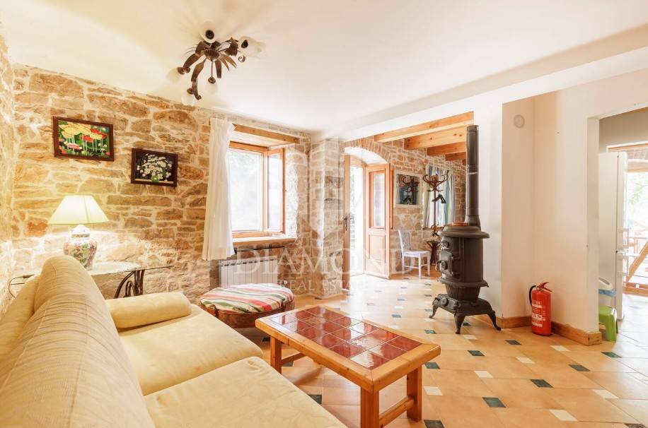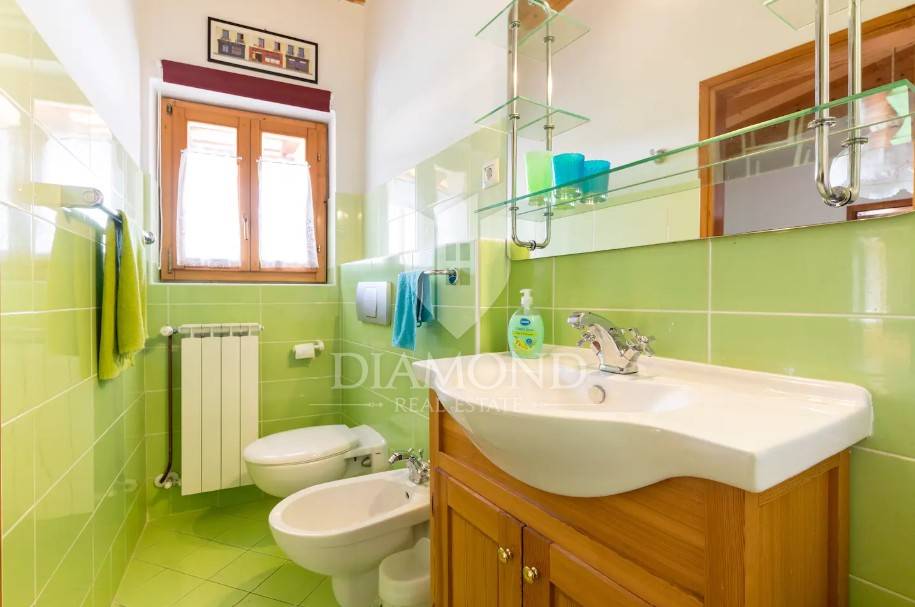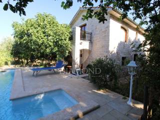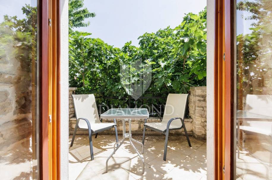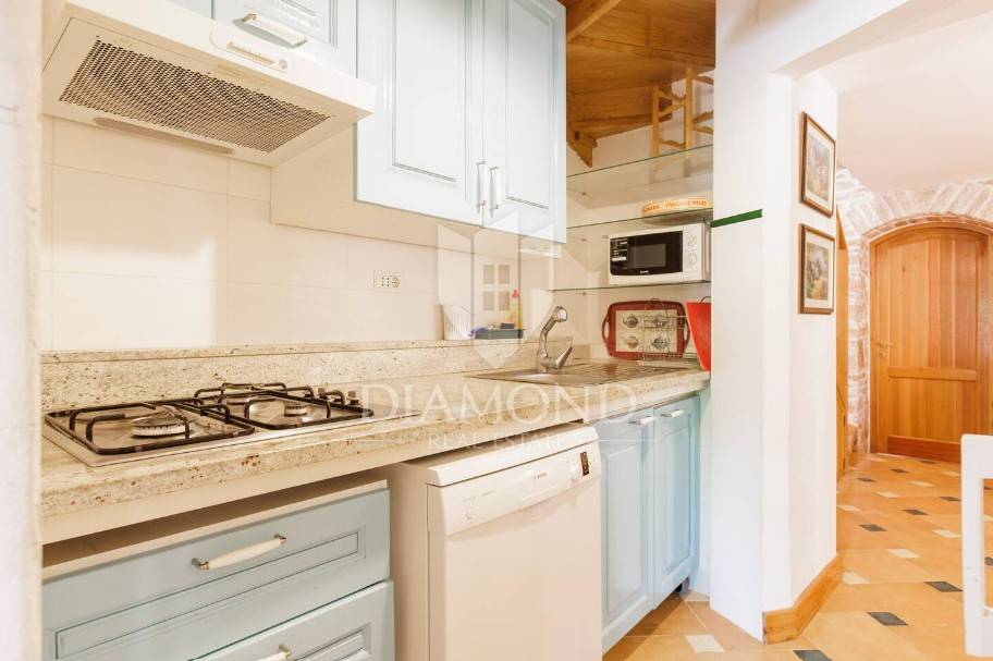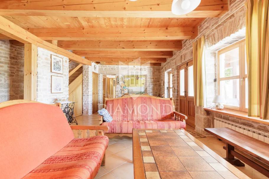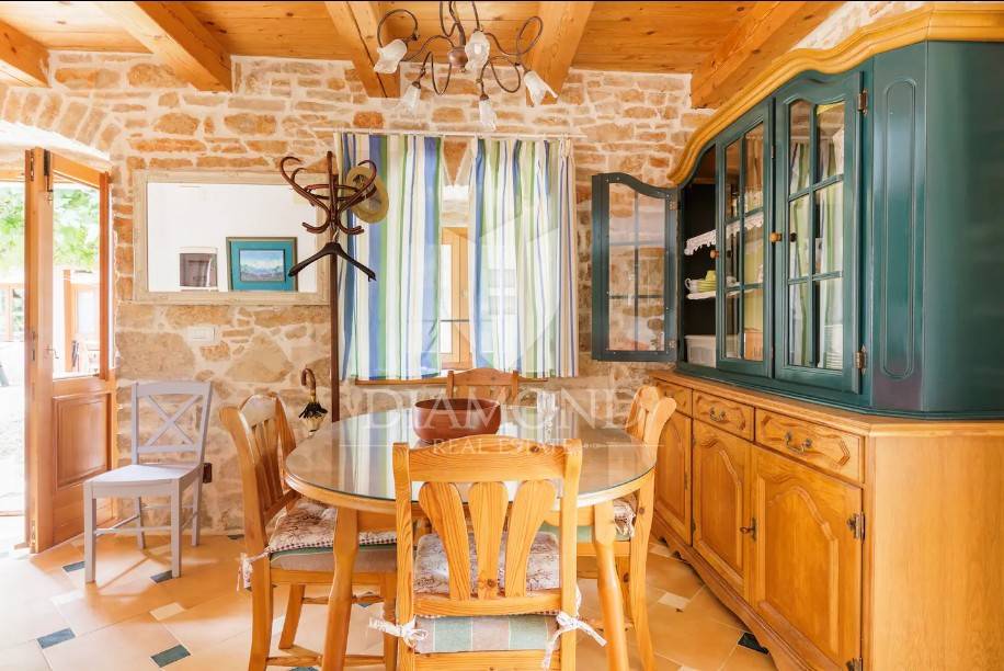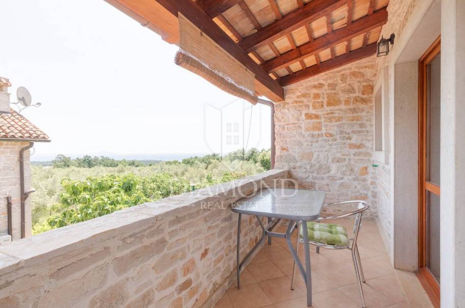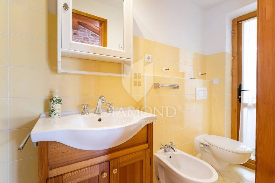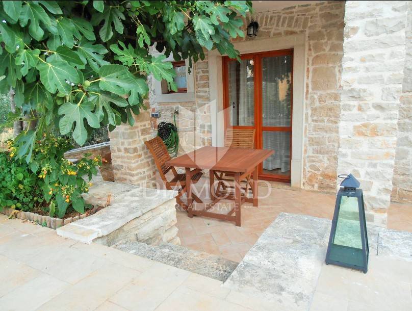 Only 5 kilometers from the small and special town of Krnica, in a small village is located this beautiful property with two indigenous stone Istrian holiday homes. On a plot of 500 m2, two stone Istrian houses have been renovated and converted into holiday homes with a swimming pool. They were completely renovated and equipped in 2015 and have been in operation as holiday homes ever since. The first house, 140 m2, consists of ground floor and first floor. The ground floor includes a comfortable living room, dining room and kitchen. There is one guest toilet with shower and a bedroom with private bathroom. Upstairs are two bedrooms with private bathrooms and one has access to a balcony with a beautiful view. On the first floor in the rooms there are air conditioners and the house has prepared installations and radiators for central heating. The second house, slightly larger than 160 m2, is also designed as a two-storey building. The ground floor consists of a living room, kitchen and dining room, a smaller service room, pantry, guest toilet and there is one bedroom with private bathroom. The first floor combines three bedrooms also with private bathrooms and access to a beautiful covered terrace overlooking the sea and surrounding nature. Air conditioners are installed in all three bedrooms upstairs and in the living room there is a functional wood stove. There are also ready-made installations for central heating. The garden is fully fenced and offers perfect peace and privacy. It is arranged and maintained and there is a beautiful pool of 22 m2 with a beautifully landscaped pool beach. Beautiful green areas and old fruit trees guarantee the comfort of staying and enough natural shade and additionally protect from the view of potential passers-by. Parking for two cars is provided on the plot. The property has a well-established rental business during the summer season and since the property is in the VAT system, the future owner does not pay real estate transfer tax. The house is an excellent investment in tourism, located in a great location just 2.5 kilometers from the first beach. The beautiful Duga Uvala is 5 kilometers away, and the first shop, restaurant and cafe are within walking distance.