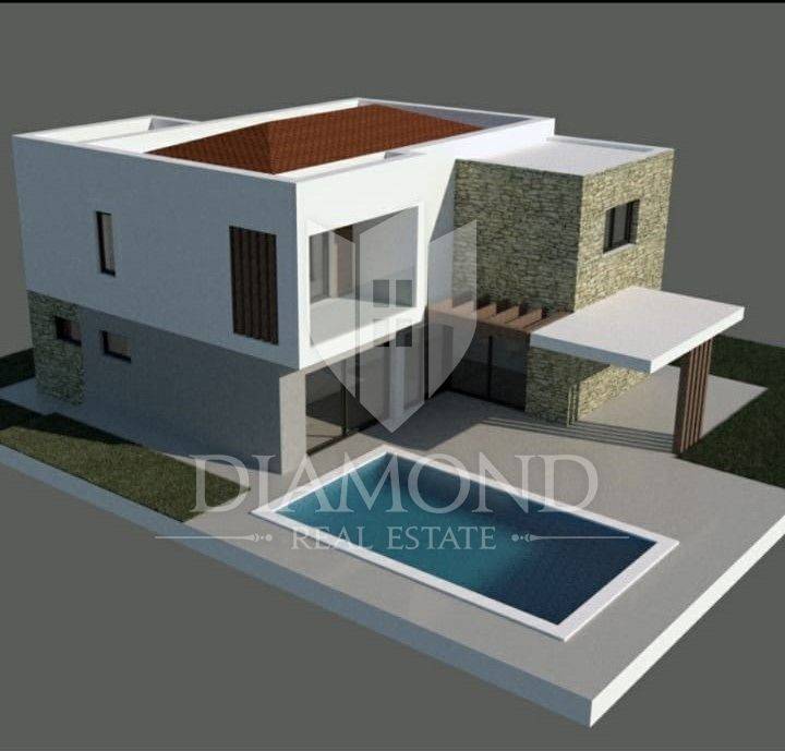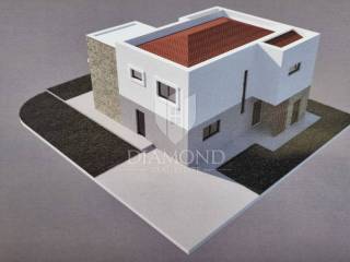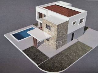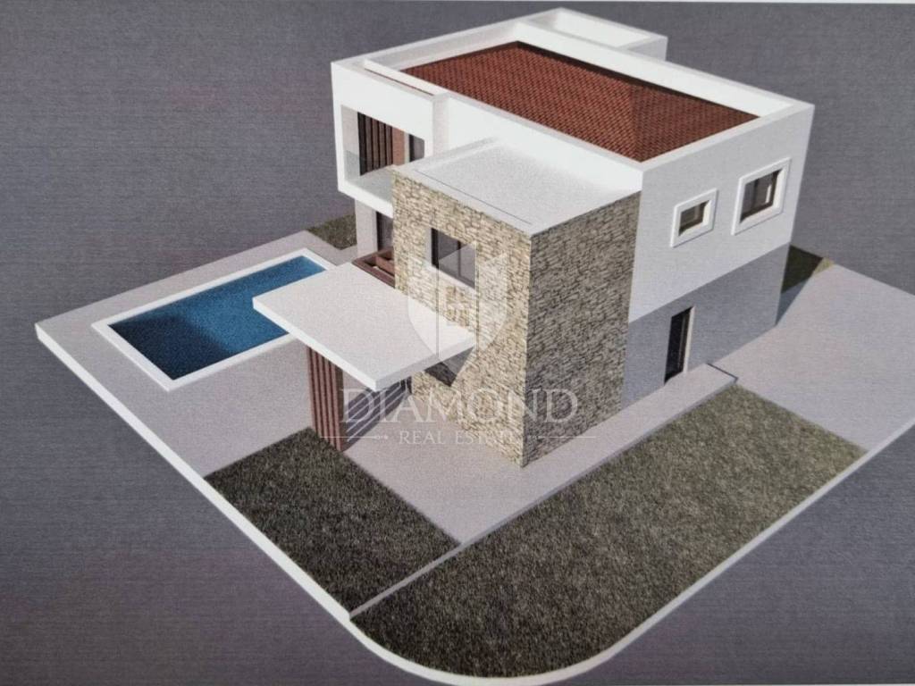 In a small settlement near Marčana, known for its beautiful sea view and beautiful vacation homes, we are selling a modern design vacation home with a swimming pool. The house is designed as a one-story building and has a total square footage of 206 m2. The floor represents the night area with three bedrooms, one of which has its own bathroom, while two bedrooms use one shared bathroom. The master room also has an exit to the terrace with a beautiful view of the sea. The ground floor combines the living room, dining room and kitchen. There is also a guest toilet and a laundry room. The outdoor terraces are functionally connected to the living room and continue to the pool beach. The house is currently under construction, and the planned completion date is June 1, 2023. It is sold completely finished with a landscaped garden with the possibility of furnishing by agreement. The yard covers an area of 424 m2, and it is decorated with a beautiful pool of 28 m2 with an arranged sunbathing area. The yard is landscaped and fenced and guarantees its guests and hosts peace and privacy. The issue of heating and cooling is solved with air conditioners installed in each room, a pellet stove located in the living room, and underfloor heating is installed throughout the house, which makes the property comfortable for living and staying all year round. The property is an ideal opportunity for investment in a tourist rental, given that it is ideally located, only 7 km from Marčana and 20 km from Pula. There are also restaurants and cafes nearby, and the first store is within walking distance. Beautiful beaches with clean sea are only 2 kilometers away.