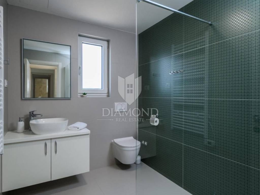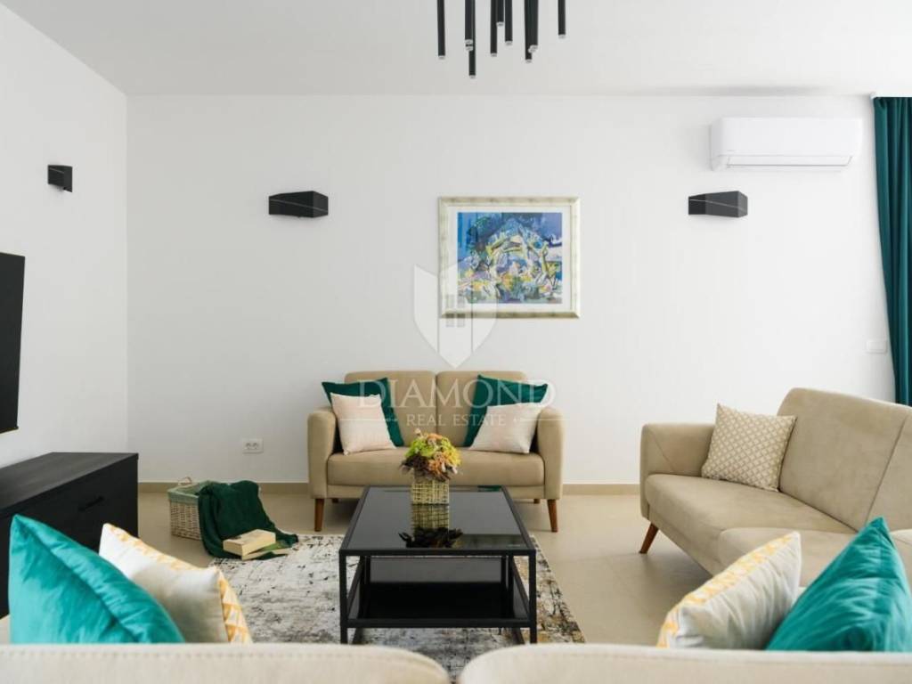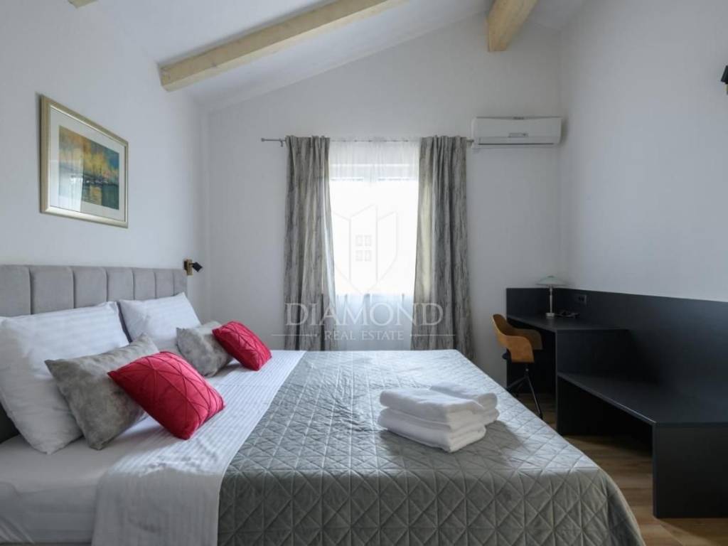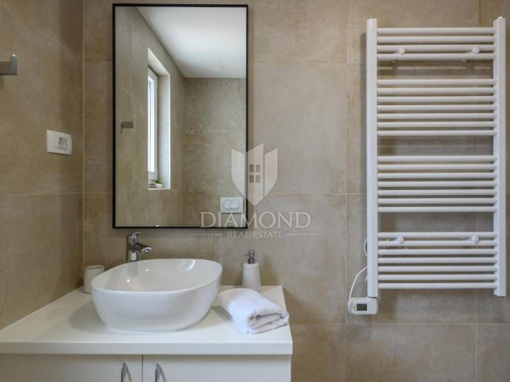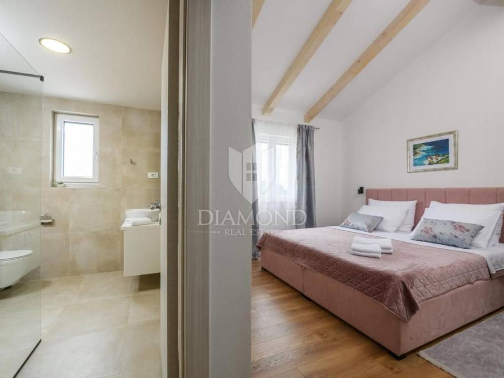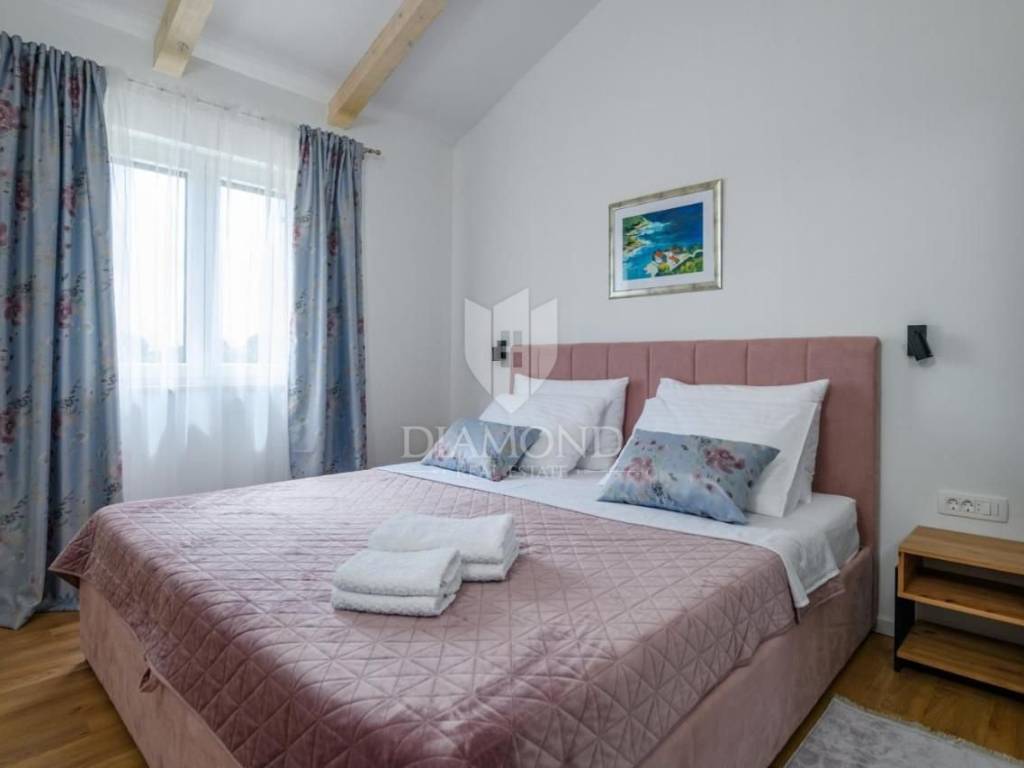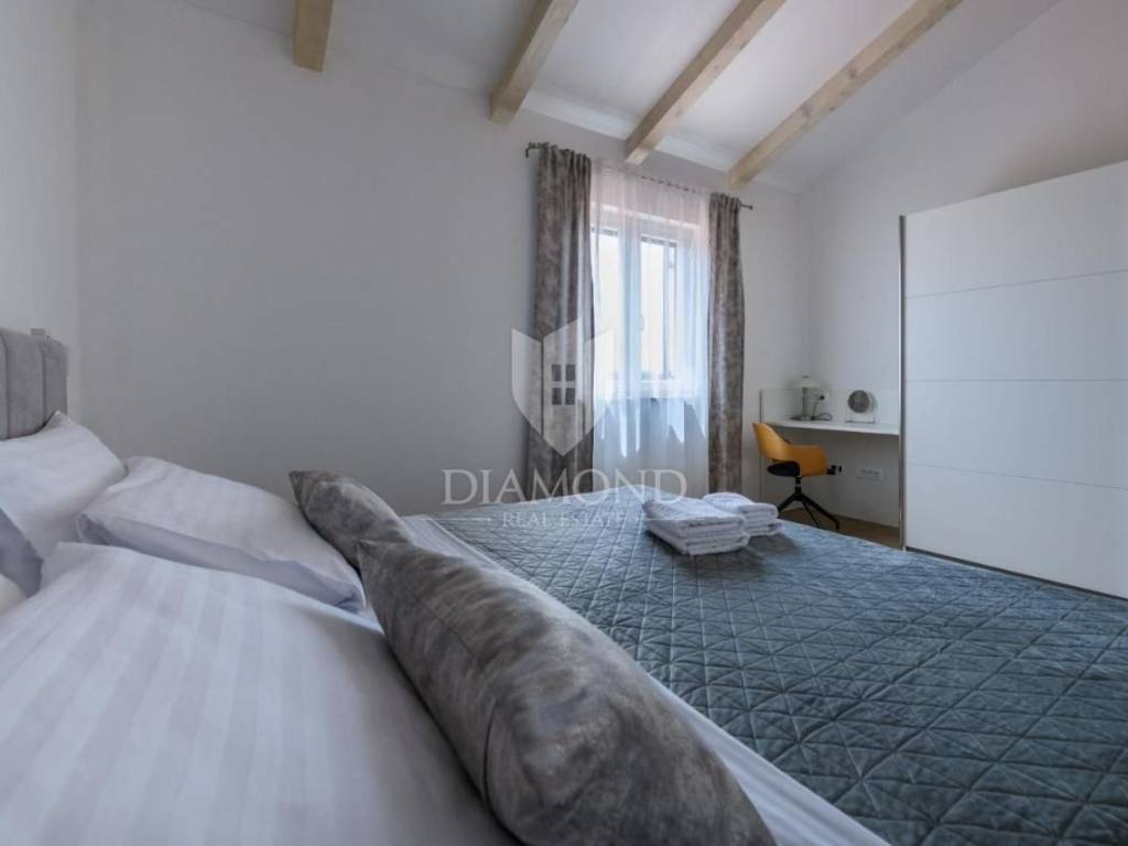 Marčana, surroundings, we are selling a newly built holiday house only 4 kilometers from the sea. This beautiful property of quality construction is designed as a two-story house with a total square footage of 286 m2. The first floor represents the night area and consists of three comfortable bedrooms, each of which has its own bathroom and an additional room that is used as a laundry room. The ground floor consists of an open space that combines a pleasant living room, a dining room and a fully equipped kitchen with a pantry. There is also one bathroom and a room that is used as a game room with social facilities. The living room is abundant with lots of natural light and the large glass walls blur the border between interior and exterior and represent a link to the outdoor area where there is a swimming pool with an arranged sunbathing area and a summer kitchen with an outdoor toilet and a covered dining area with a view of the pool and garden. The fully fenced garden area covers 1154 m2 and offers secured parking, beautiful green areas with a small children's playground, a spacious sunbathing area and a nice 32 m2 swimming pool. On the outer part, there is an auxiliary building where there is a summer kitchen, and where, in addition to the outdoor toilet, there is also the engine room of the swimming pool and another additional room in which there is an outdoor laundry room and a laundry room. The location of the house is also excellent, it is within walking distance to shops, restaurants and cafes, and the first beach is only a 5-minute drive away. The property is located in a quiet location at the entrance to a small tourist town on the east coast of Istria, where vacation homes and luxury villas predominate. It represents an excellent opportunity for investment in the tourist rental business where, due to the location, quality and contents of the house, the return of the invested money is guaranteed through the tourist rent.