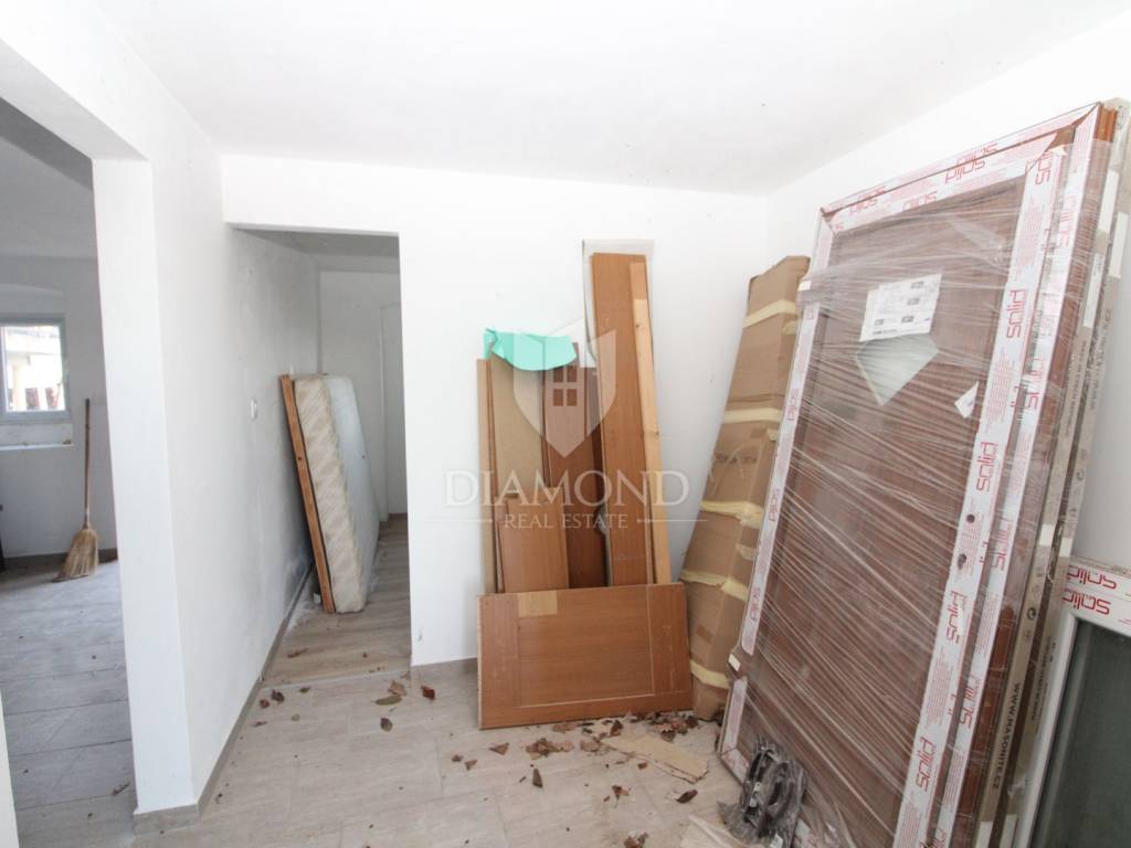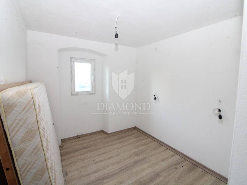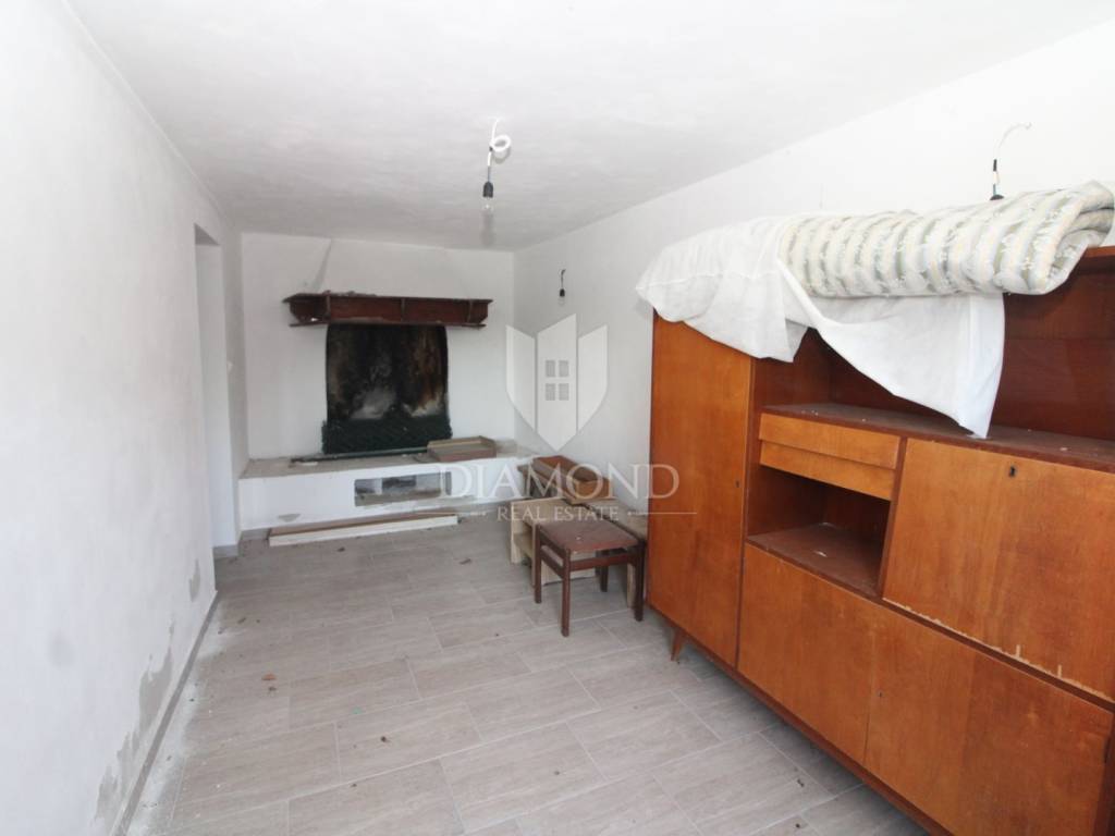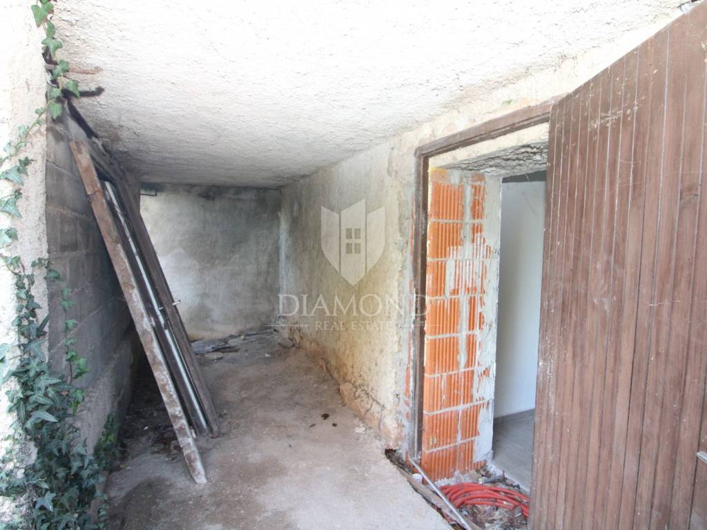 Labin, surroundings, apartment in a small settlement for adaptation In a small settlement not far from the town of Labin, there is a stone house with a started renovation on the ground floor with a total area of 35 m2. New doors and windows have been installed on the property. The yard has a total area of 475 m2, where there is the possibility of building a swimming pool. The house has electricity and water connections. Surrounded by nature and greenery, this property is ideal for a peaceful family life.