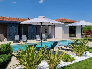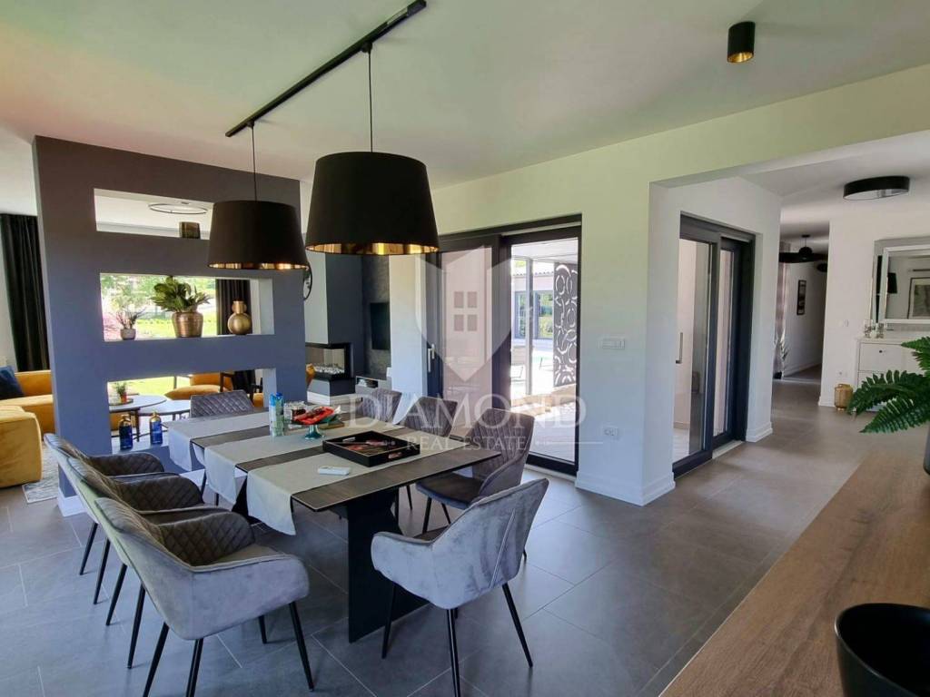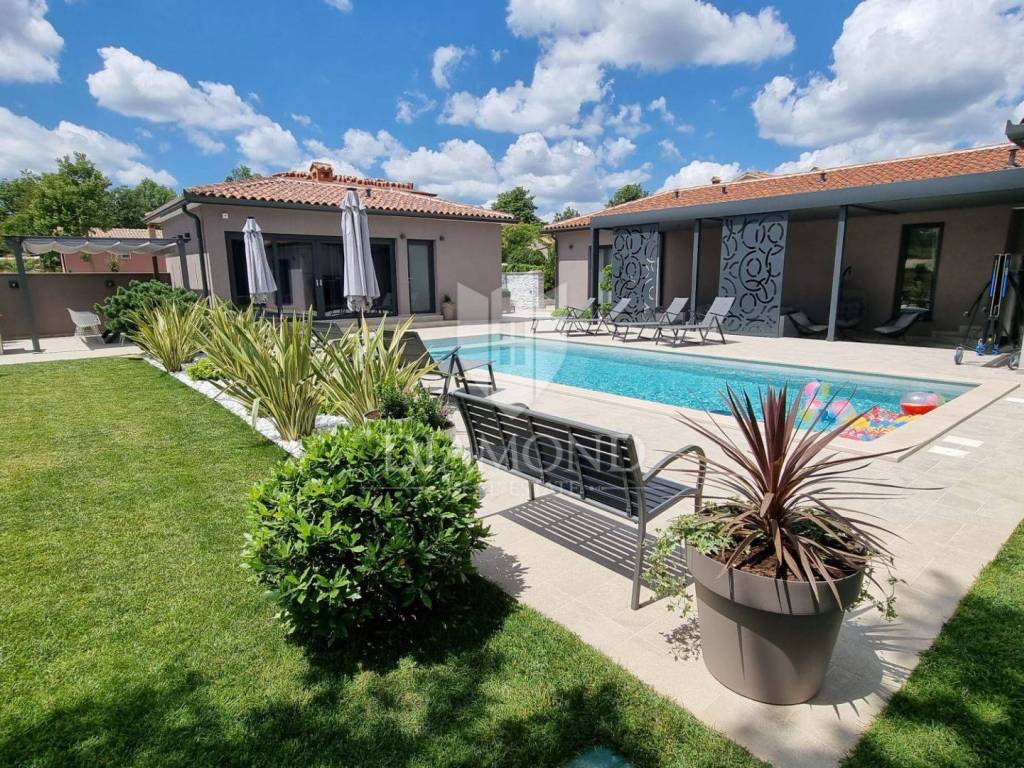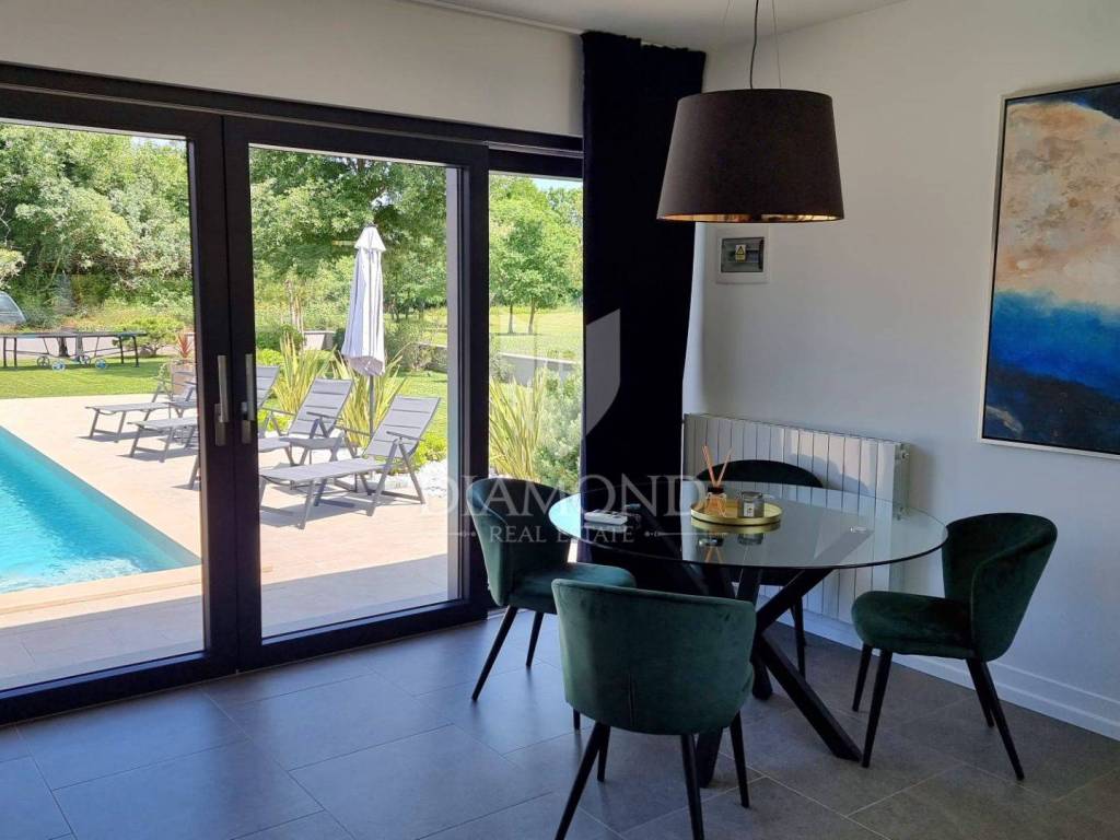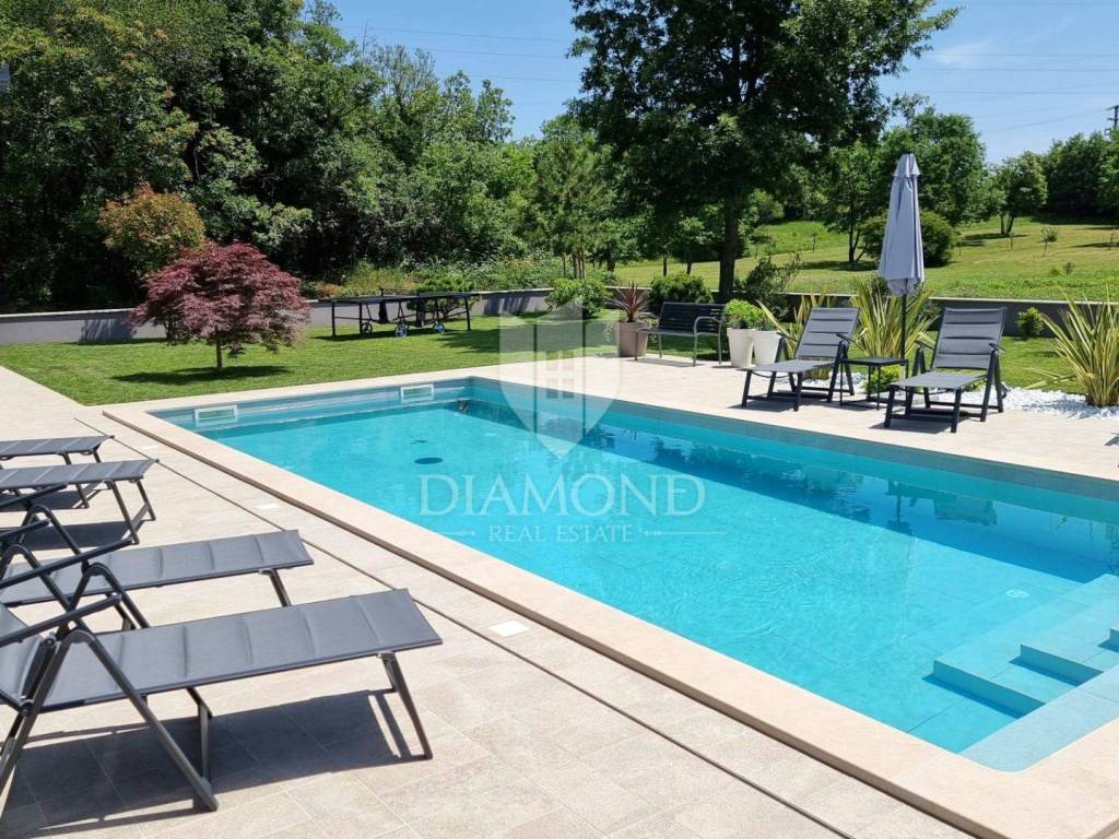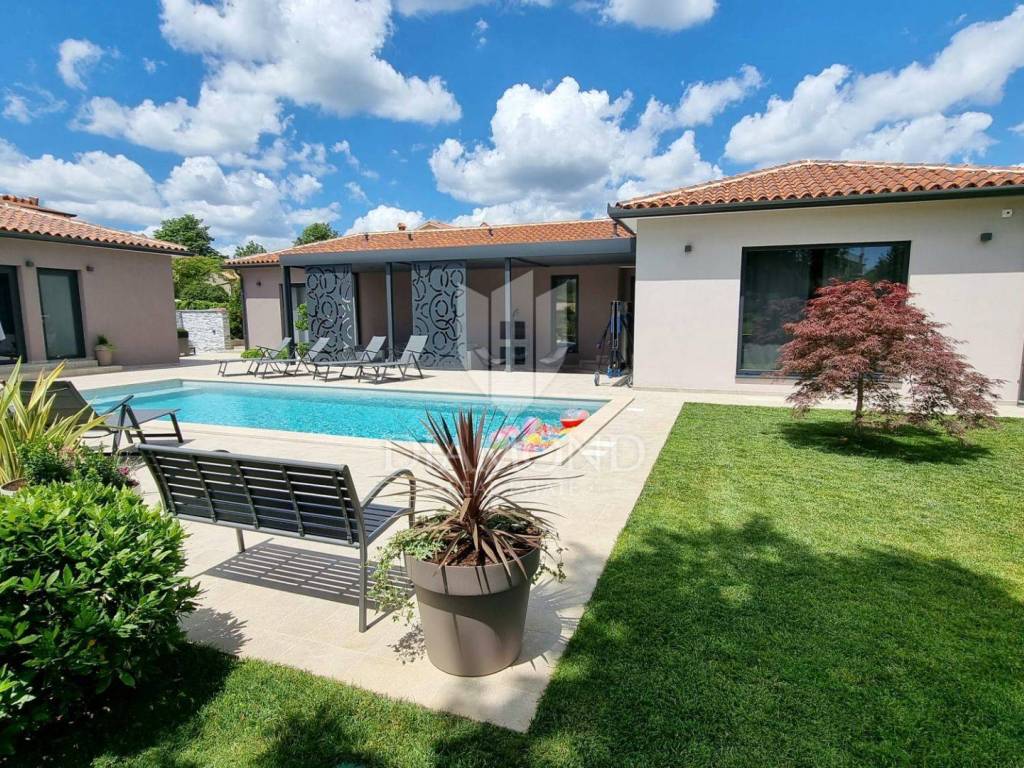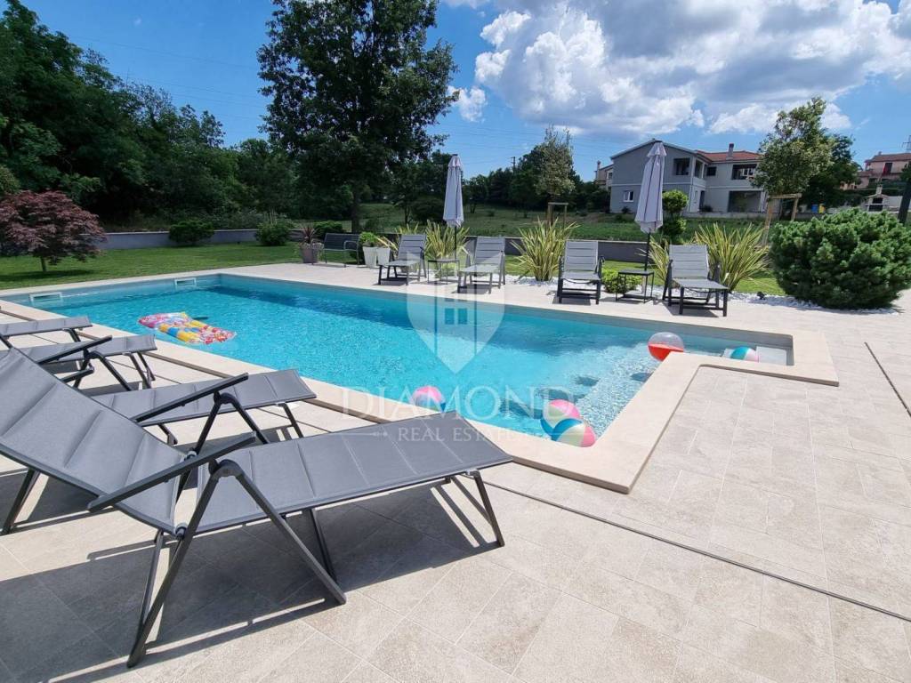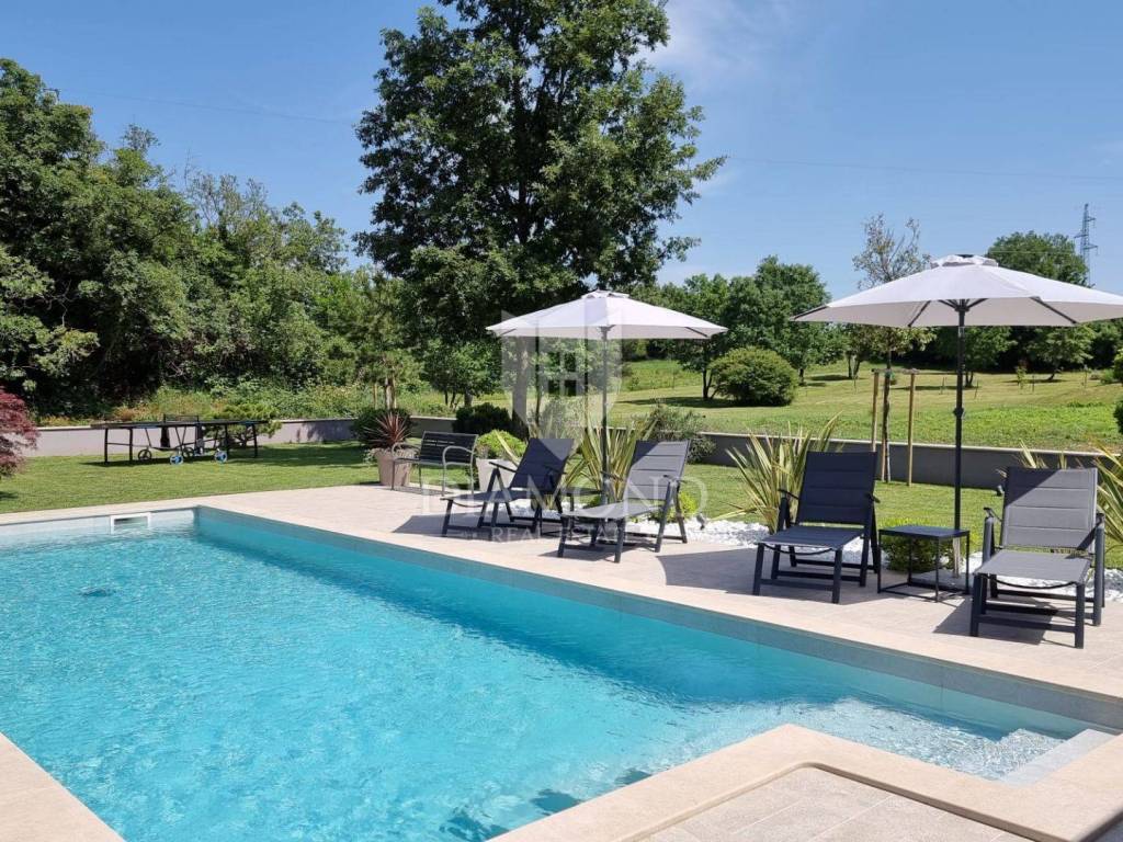 Labin, a beautiful single-family house with a pool. A beautiful single-family house located in the immediate vicinity of Labin. This house is not only a home, but also an expression of pure luxury and comfort. Every corner of this villa reflects carefully planned construction and quality materials. With its 178 m² of living space, the villa offers a spacious living room, a fully equipped kitchen with storage space, and three elegant bedrooms, each with its own bathroom. An additional bathroom adds convenience and comfort. Around the villa, on 1109 m² of beautifully landscaped yard, there is a heavenly corner for relaxation and fun. Jacuzzi, swimming pool with sunbathing area, parking and studio apartment with kitchen, bedroom and bathroom, provide supreme comfort and versatility. Only the highest quality materials were used in the construction, and the villa is equipped with the most modern solutions such as DAIKIN air conditioning, central heating system, and preparations for a heated pool. The facade of 10 cm styrofoam, PVC joinery, and the irrigation system and automatic garden sprinklers make living in this house a pure pleasure. This property has been carefully designed to provide not only luxurious, but also practical living space. The property is in order, which provides security and stability to potential buyers. In short, this house offers a perfect combination of luxury, comfort and practicality, and is an ideal place for a family looking for a peaceful life close to the sea and all essential amenities.