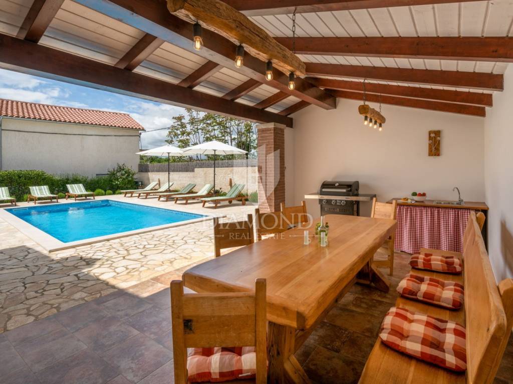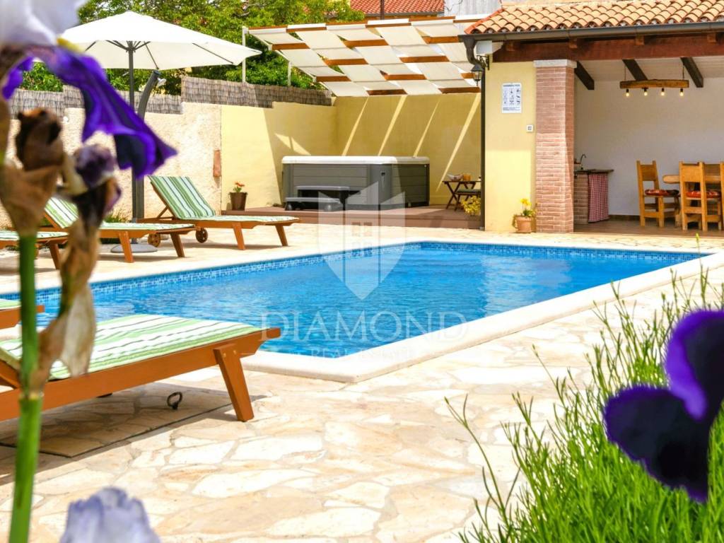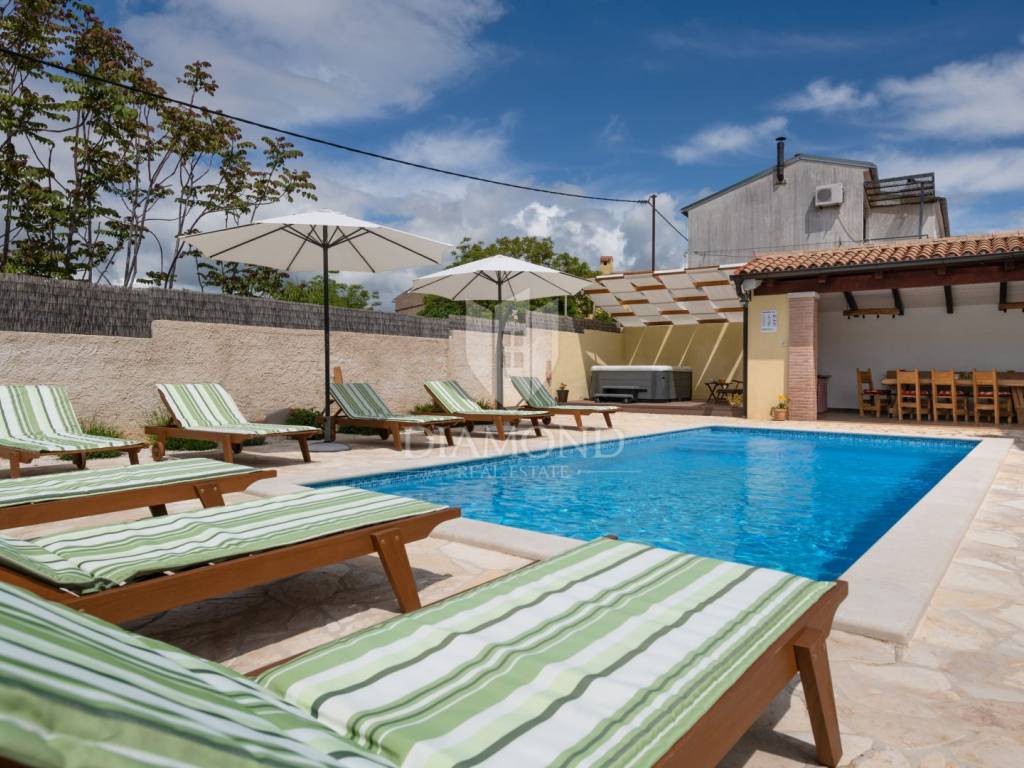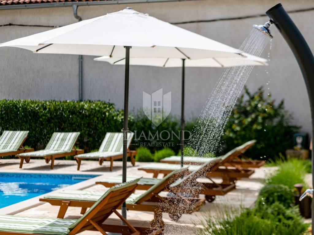 The backyard is an oasis of peace and relaxation, with a heated swimming pool, a jacuzzi, sun loungers and a summer kitchen with a barbecue - the perfect place to enjoy warm summer days. Only 3 km away from beautiful beaches, Krnica offers a perfect starting point for exploring famous cities such as Pula, Rovinj and Opatija. Also, the proximity of a fully equipped diving center makes this location ideal for lovers of an active holiday.