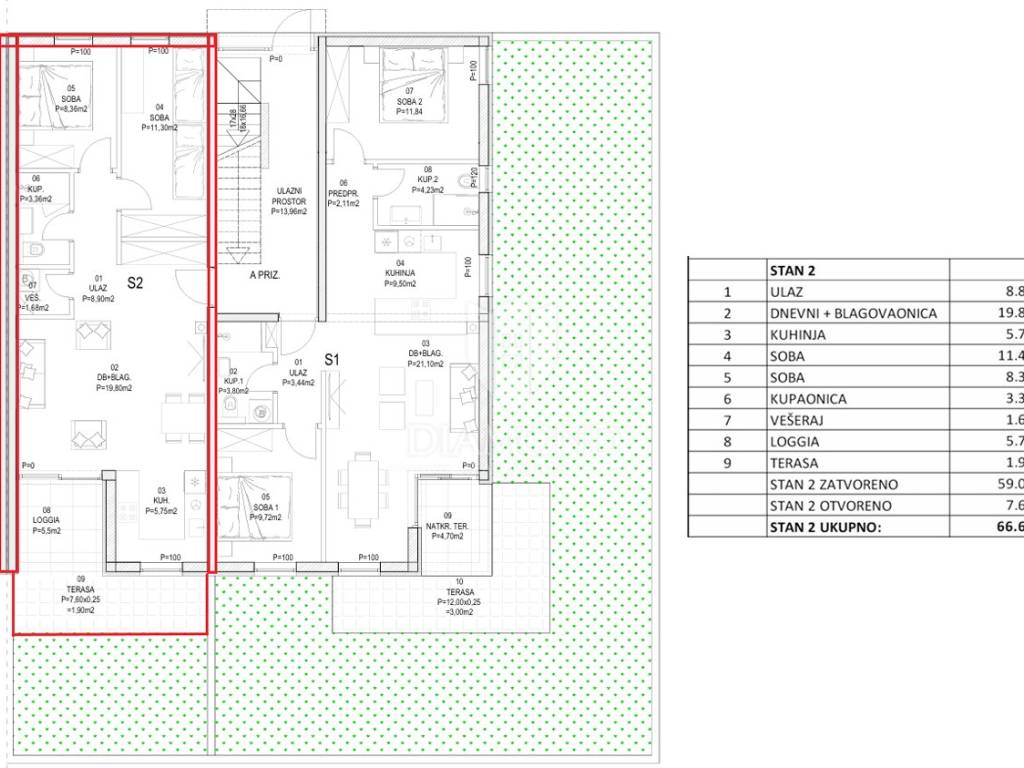 66 m²