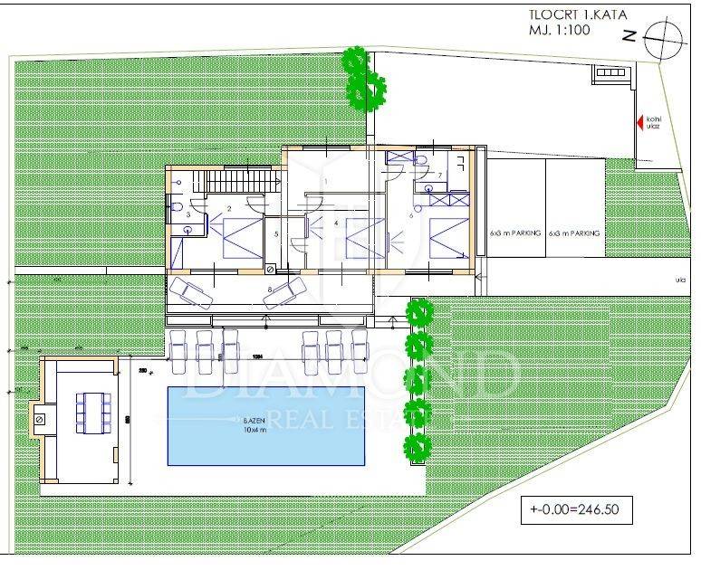 near the beautiful medieval town of Svetvincenat we sell this new and modern house with pool. The house is located in a small town surrounded by nature, holiday homes and family houses. Considering the location in the center of the Istrian peninsula, other tourist centers such as Rovinj, Poreč, Fažana and Pula can be reached very quickly and easily. Svetvincenat is also becoming a favorite place to live and relax because of the great location and because of the large number of events during the tourist season and many facilities that ensure a high quality of life such as shops, schools, health center, kindergarten ...