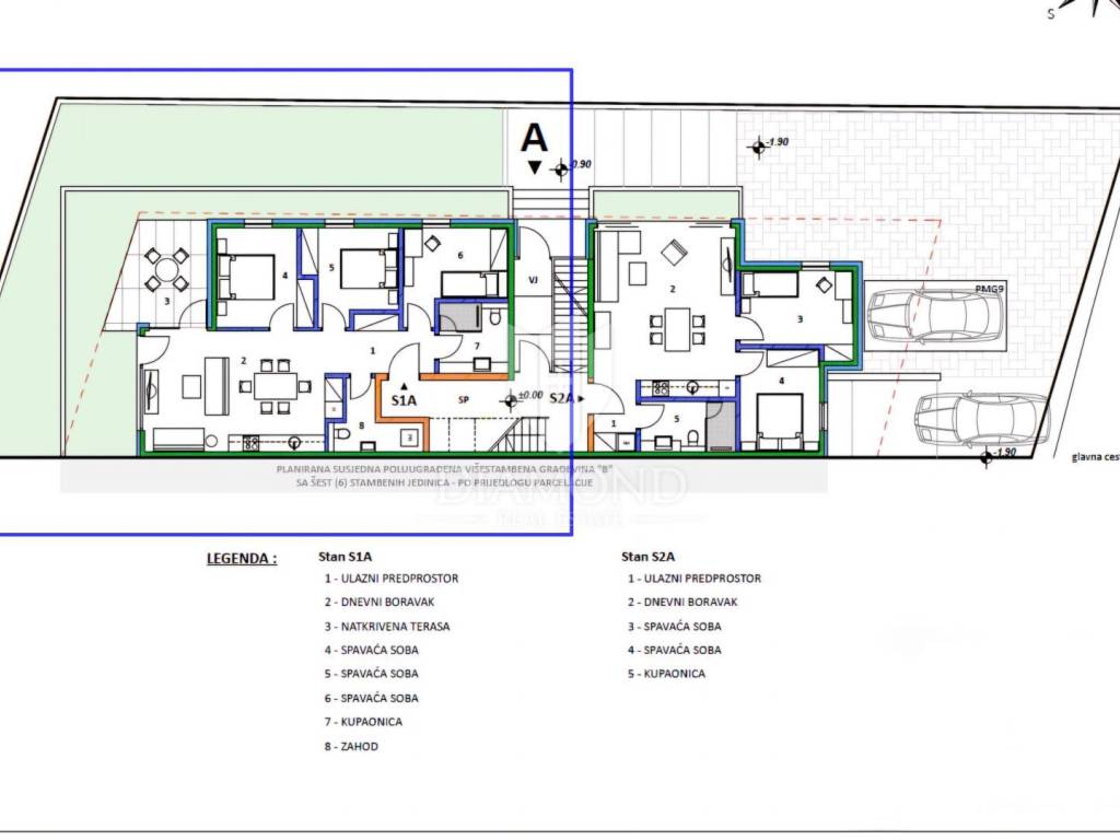The apartment is located on the ground floor of a modern new building with 12 apartments. The total area of ​​the apartment is 82 m2. It consists of a living room with an open kitchen and dining room, 3 bedrooms, a bathroom, a guest toilet and a hallway. From the living room there is a covered terrace from which you can access the landscaped garden. The apartment has a storage room and one parking space in the garage. The special feature of this apartment is the possibility of using a shared heated pool of 6 x 12 m, which will be located in front of the building.