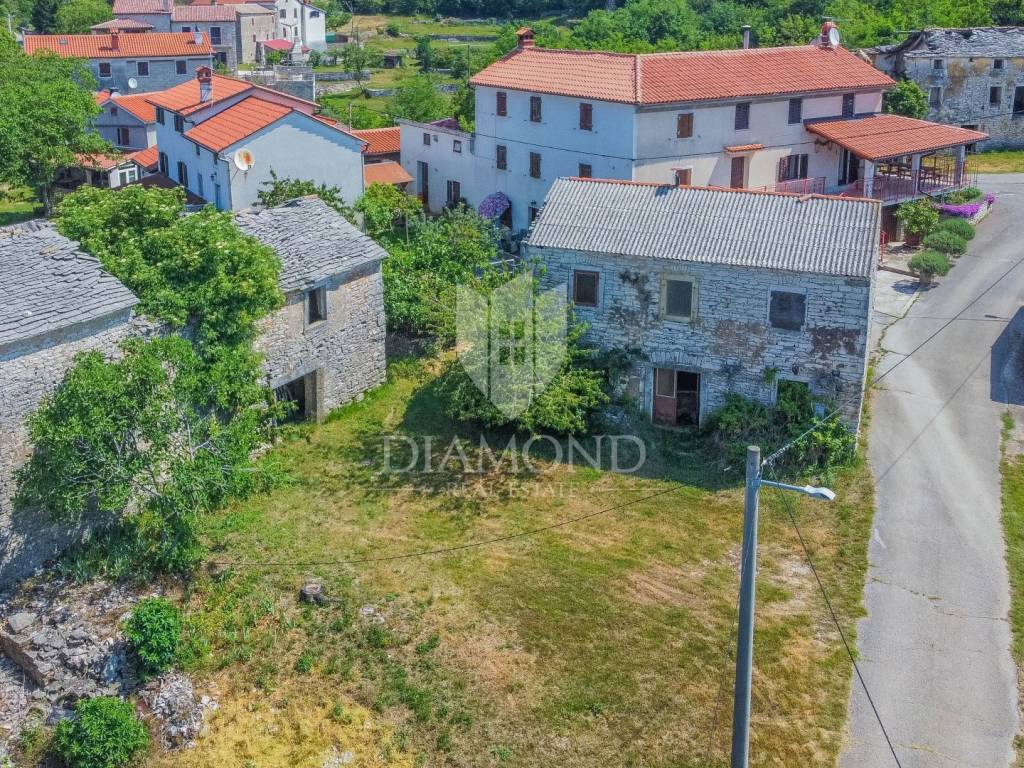 Stone Istrian house for renovation for sale in a quiet location near Oprtalj, very interesting for investment.