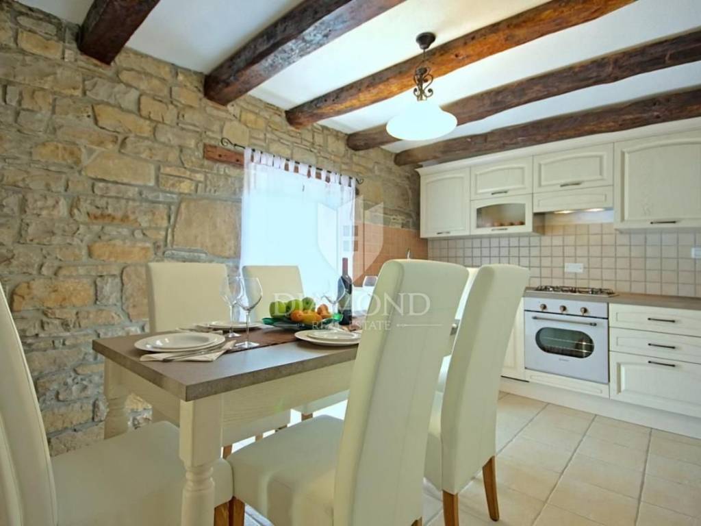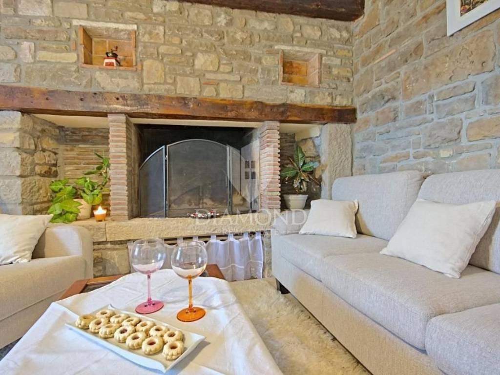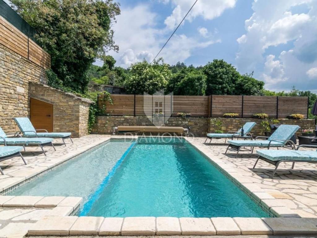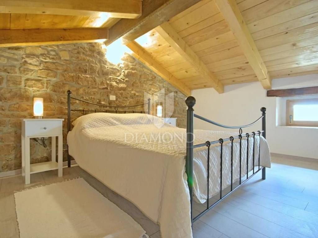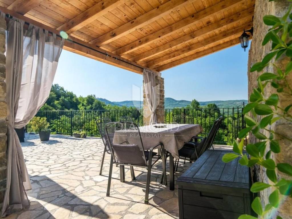 It is an autochthonous Istrian stone house built in the 19th century, which was completely renovated in 2015. The area of the villa is 116 m2. The villa consists of a living room, a kitchen with a dining room, 3 bedrooms and 3 bathrooms. On the ground floor of the villa there is another additional space that can be arranged as a tavern, a gym or in various other ways, depending on the wishes of the new owner. The villa is heated by a fireplace in the living room and air conditioning. The villa offers a wonderful panoramic view of the beautiful Istrian landscape. The villa was renovated in such a way as to retain its autochthonous Istrian style.
