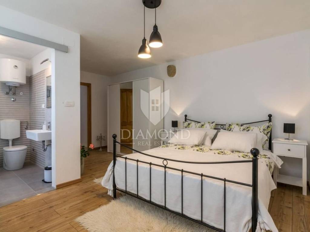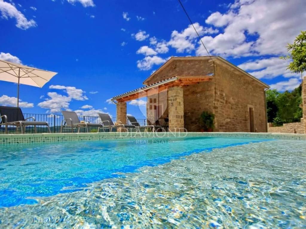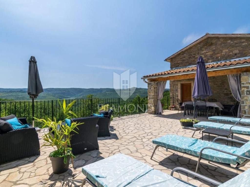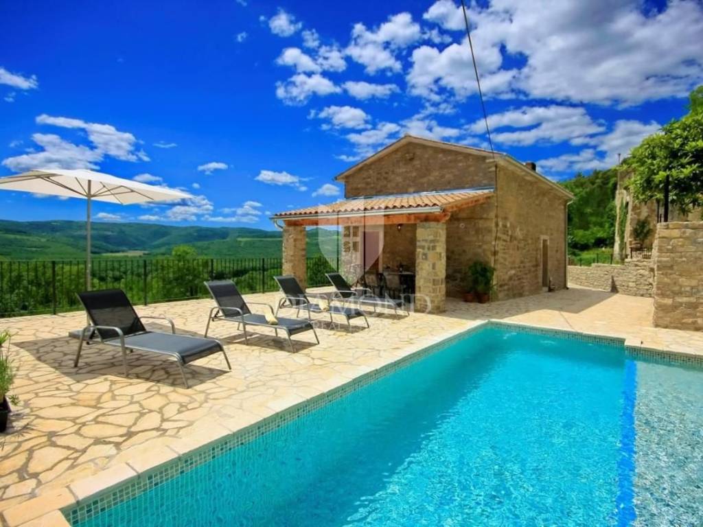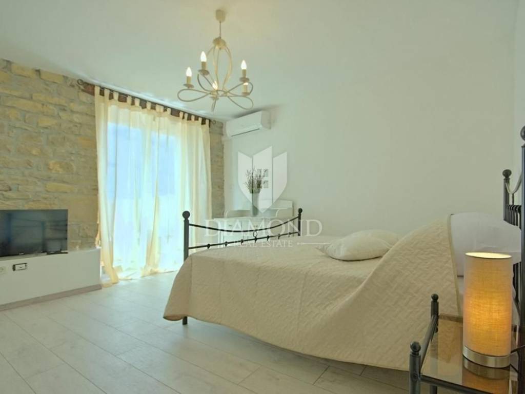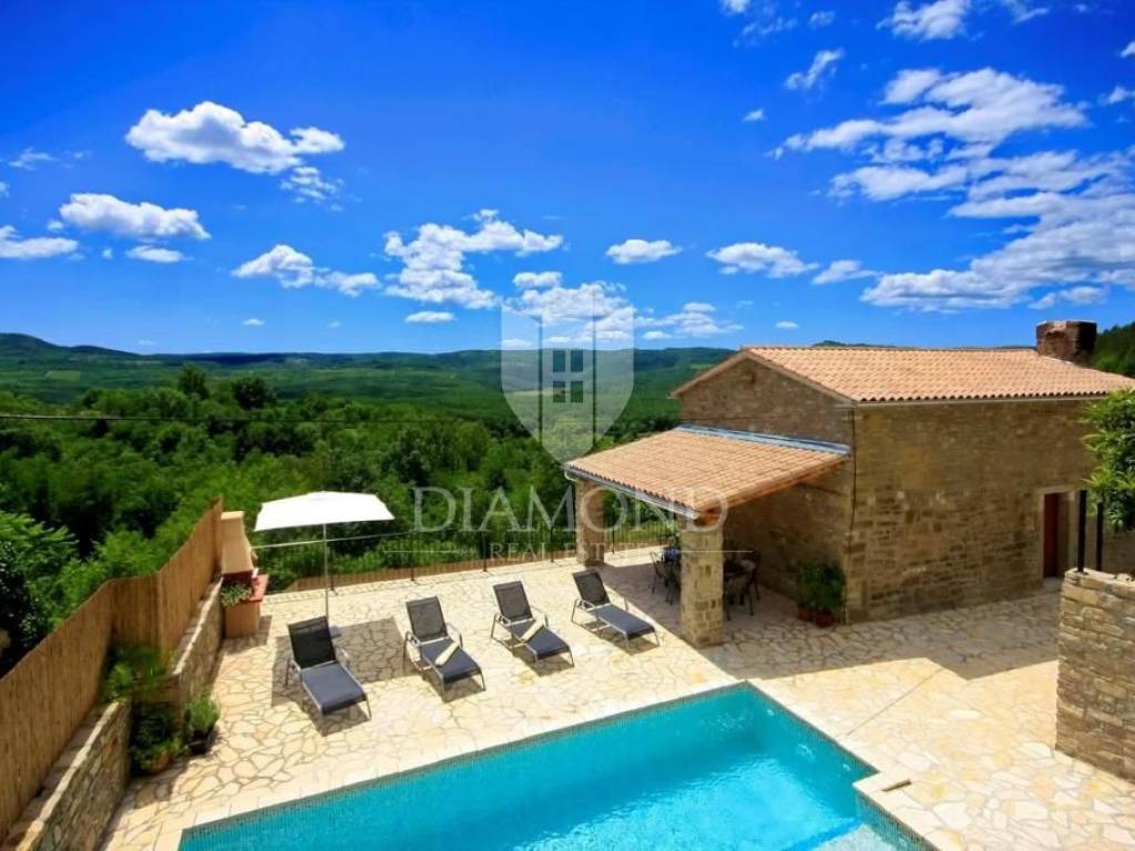 It is an autochthonous Istrian stone house built in the 19th century, which was completely renovated in 2015. The area of the villa is 116 m2. The villa consists of a living room, a kitchen with a dining room, 3 bedrooms and 3 bathrooms. On the ground floor of the villa there is another additional space that can be arranged as a tavern, a gym or in various other ways, depending on the wishes of the new owner. The villa is heated by a fireplace in the living room and air conditioning. The villa offers a wonderful panoramic view of the beautiful Istrian landscape. The villa was renovated in such a way as to retain its autochthonous Istrian style.