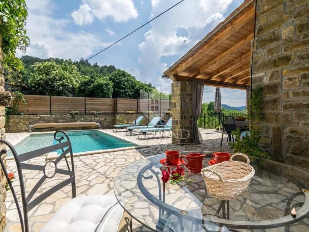For sale is a villa with a swimming pool in a quiet location near Oprtlje.