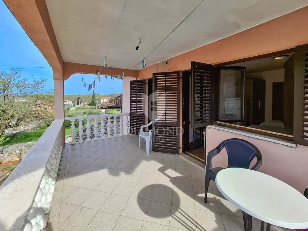 in the suburbs of the city of Poreč, this spacious apartment surrounded by nature and with a sea view is for sale. House with two separate apartments.