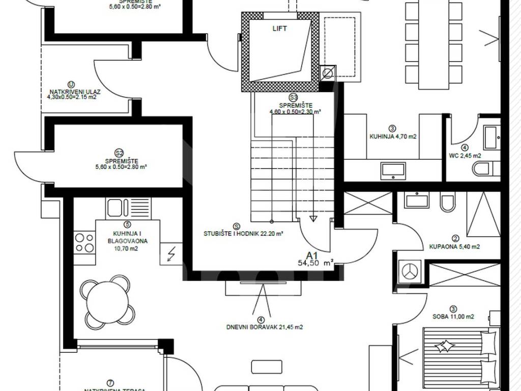 We offer a modernly decorated one-bedroom apartment of 54.50 m2, with a smart layout, located in a quiet location in Pula. The space is functional, airy and designed to provide maximum comfort without compromise. The apartment consists of an entrance hall, an open concept living room with kitchen and dining room, one bedroom, a bathroom and a covered terrace of 5.80 m2 - ideal for morning coffee or evening relaxation.
