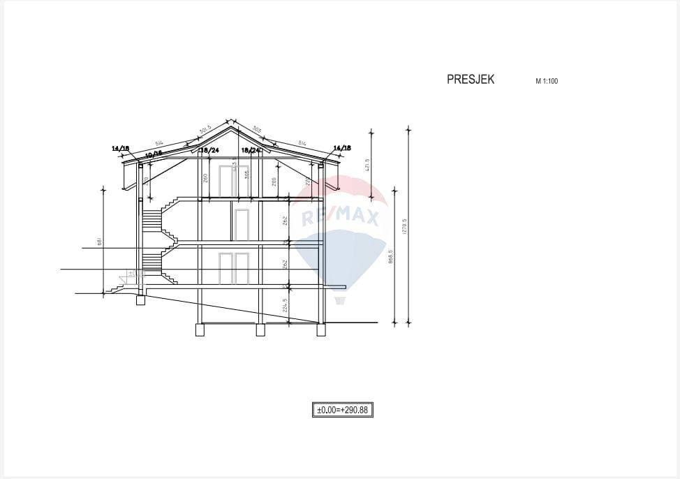 Postojeća građevinska dozvola valjana je u gabaritima nedovršene samostojeće obiteljske kuće 10x11m na 3 etaže + potkrovlje.