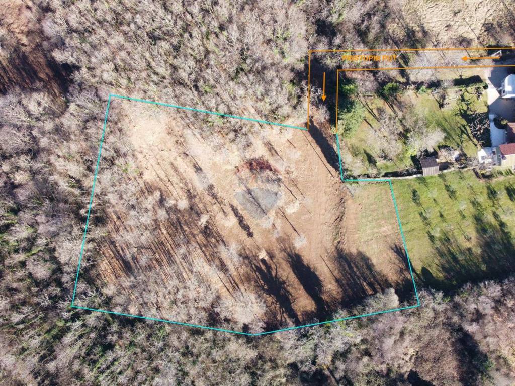 Nedaleko Labina, na dobroj mirnoj lokaciji uronjenoj u hrastovoj šumi, prodajemo ovo lijepo veliko građevinsko zemljište površine 5700 m2.
